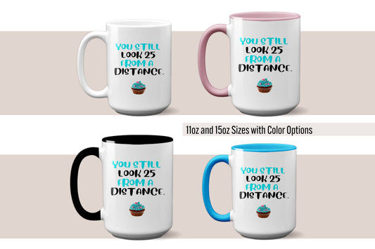 Funny "You Still Look 25 From a Distance" Mug