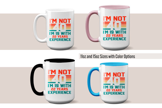 Fun "I'm Not 40, I'm 18 with 22 Years Experience" Mug