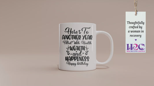 Unique "Here’s to Another Year Filled with Health, Wealth & Happiness" Mug