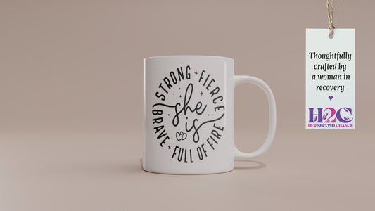 Empowering "She Is Strong, Fierce, Brave, and Full of Fire" Mug