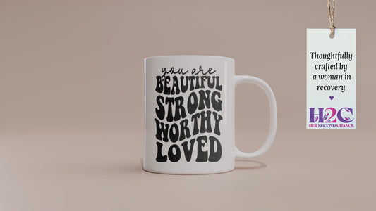 Inspirational "You Are Beautiful, Strong, Worthy, and Loved" Mug
