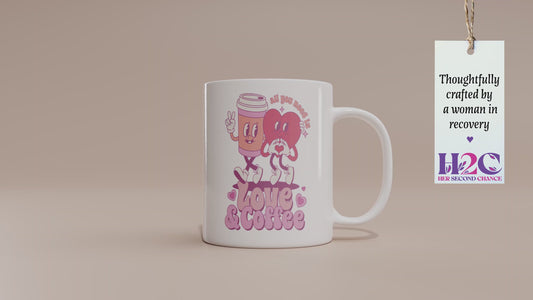 Fun "All You Need Is Love and Coffee" Valentineās Day Mug