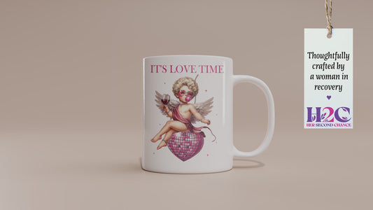 Fun "It's Love Time" Romantic Valentine's Day Mug