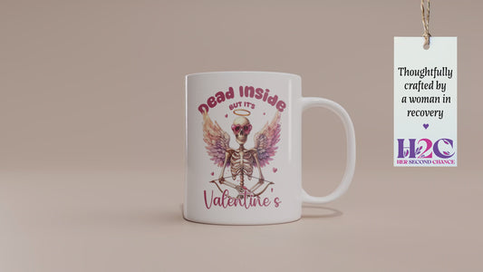 Fun "Dead Inside, But Itās Valentineās" Skeleton Angel Mug