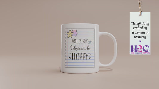 Cute "Note to Self: I Deserve to Be Happy" Mug