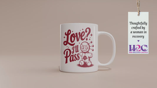 Cute "Love? I'll Pass" Voodoo Doll Valentine’s Day Mug