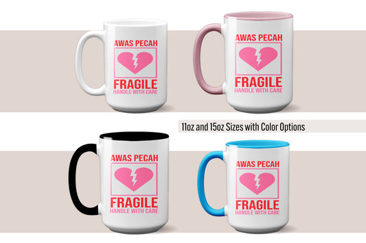 Fun "Awas Pecah Fragile - Handle with Care" Valentine’s Day Mug