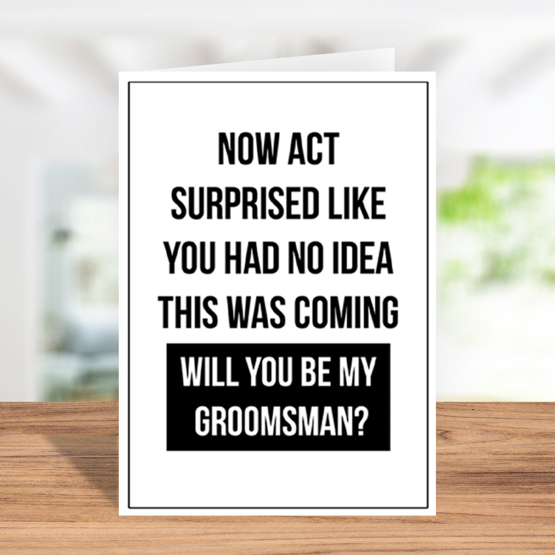 Act Surprised, Will You Be My Groomsman? Greeting Card.