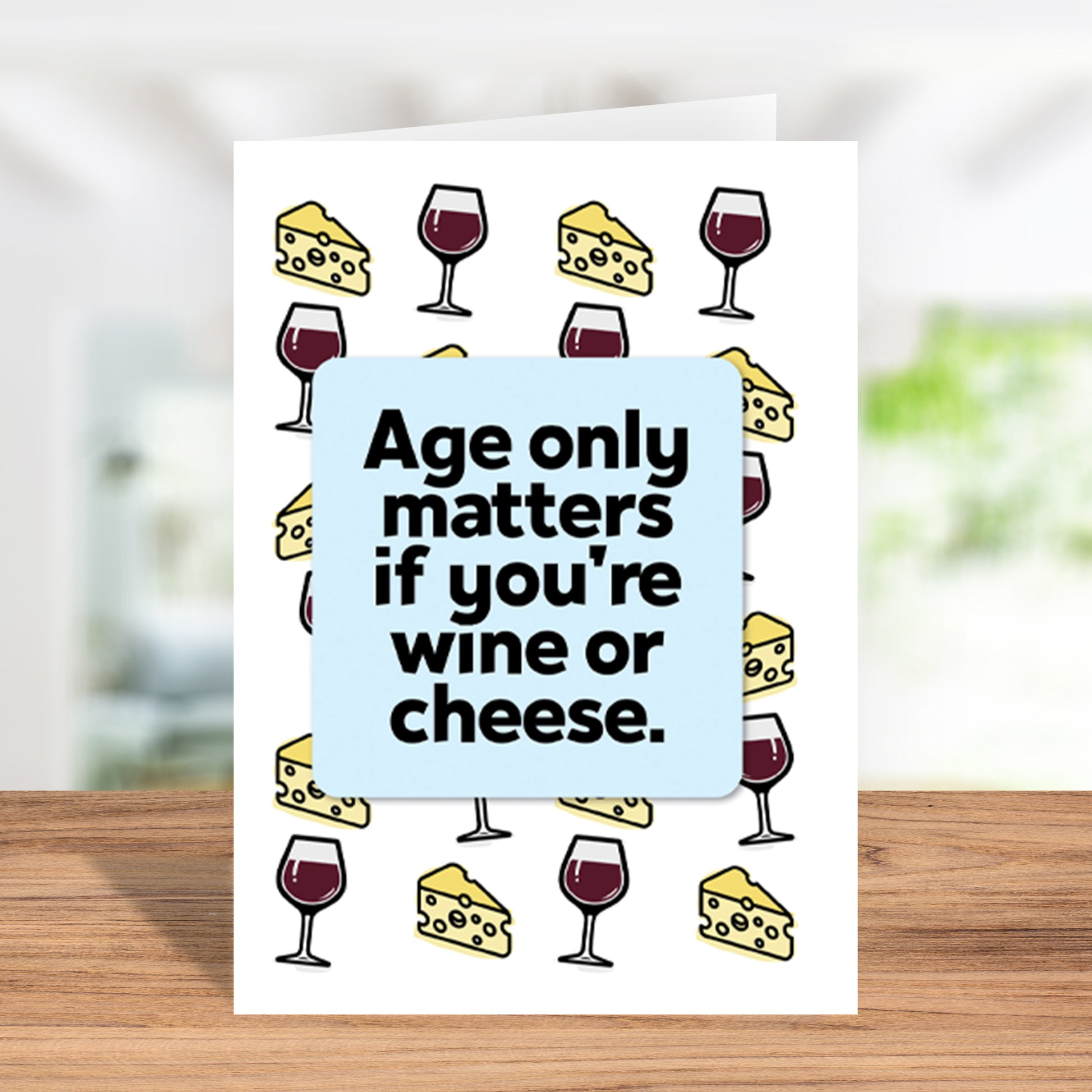 Celebrate another year well lived with a Age Only Matters If You're Wine Or Cheese greeting card. A cheesy way to wish a loved one happy birthday.