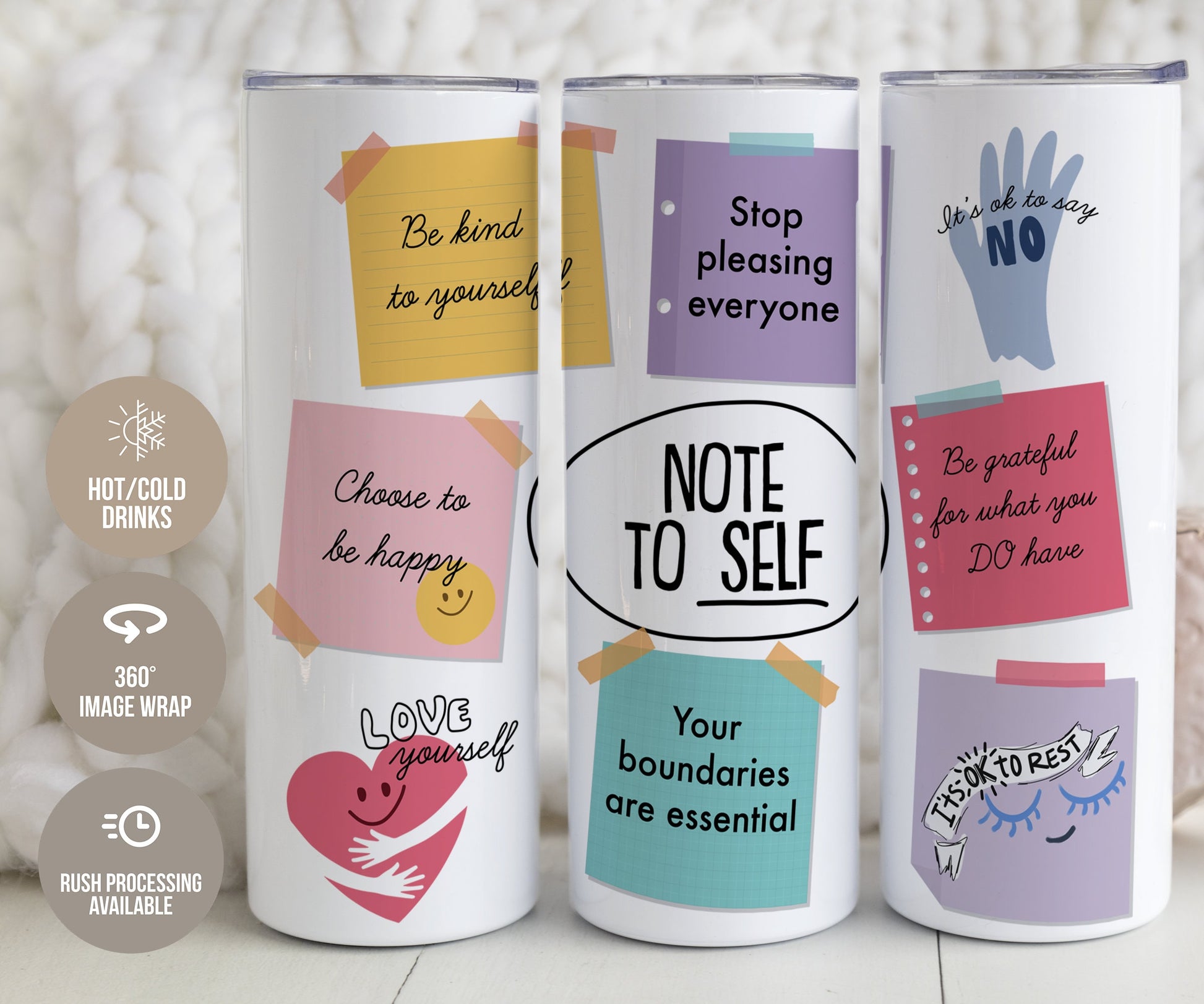 Elevate your daily routine with our Be Kind To Yourself Tumbler, a beautifully designed Positive Affirmation Tumbler that inspires self-care and confidence. This Note To Self Tumbler is more than just drinkware—it's a powerful reminder of your inner strength and positivity. Crafted from premium stainless steel, this motivational tumbler keeps your beverages at the perfect temperature while offering a daily boost of encouragement. Whether for yourself or as an empowering gift for women, let every sip reinforce the importance of self-love and resilience.