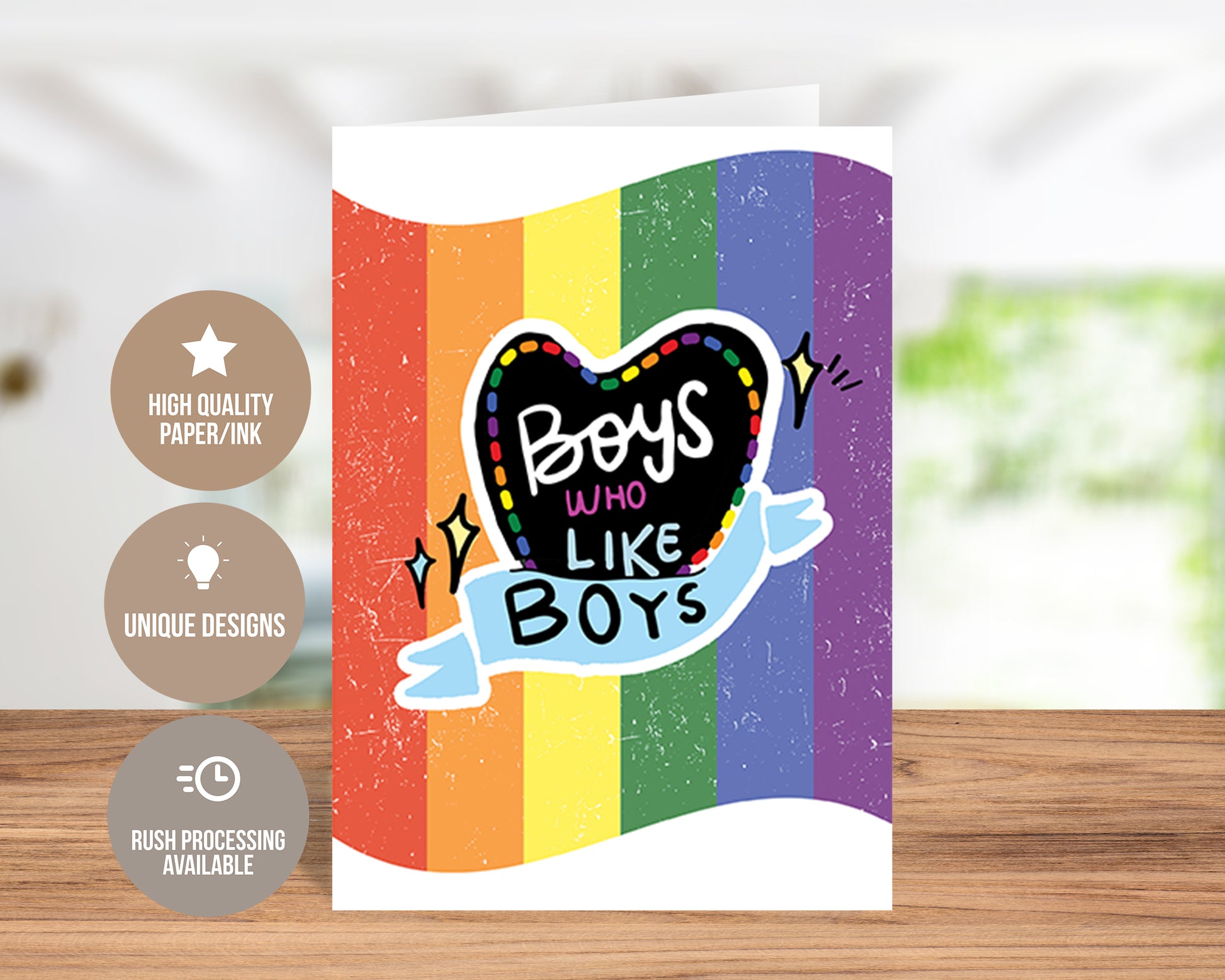Celebrate love and pride with our "Boys Who Like Boys" greeting card! This LGBTQ+ greeting card is perfect for commemorating milestones, Pride events, or simply expressing support and solidarity. Its vibrant and inclusive design honors the love between two men and celebrates the diversity and strength of the LGBTQ+ community. Whether it's for a same-sex wedding, anniversary, or just to show support, this card is a meaningful way to let your loved ones know their love is valid and celebrated. Order yours today from Her 2nd Chance and let love shine!