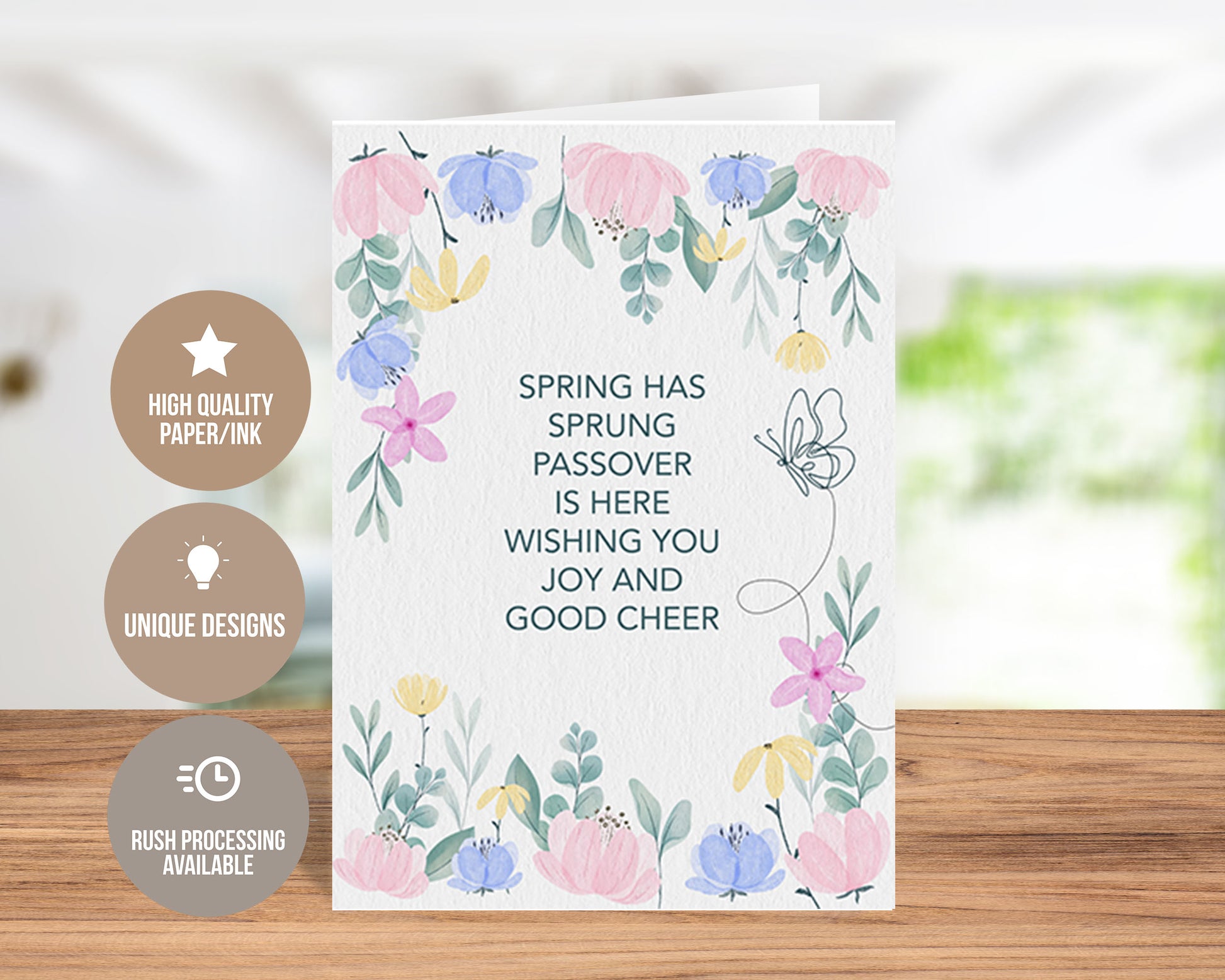 Celebrate the arrival of spring and the joyous occasion of Passover with our charming greeting card! Featuring a vibrant design and heartfelt message, this card is the perfect way to send your warm wishes to friends and family during this special time of year.