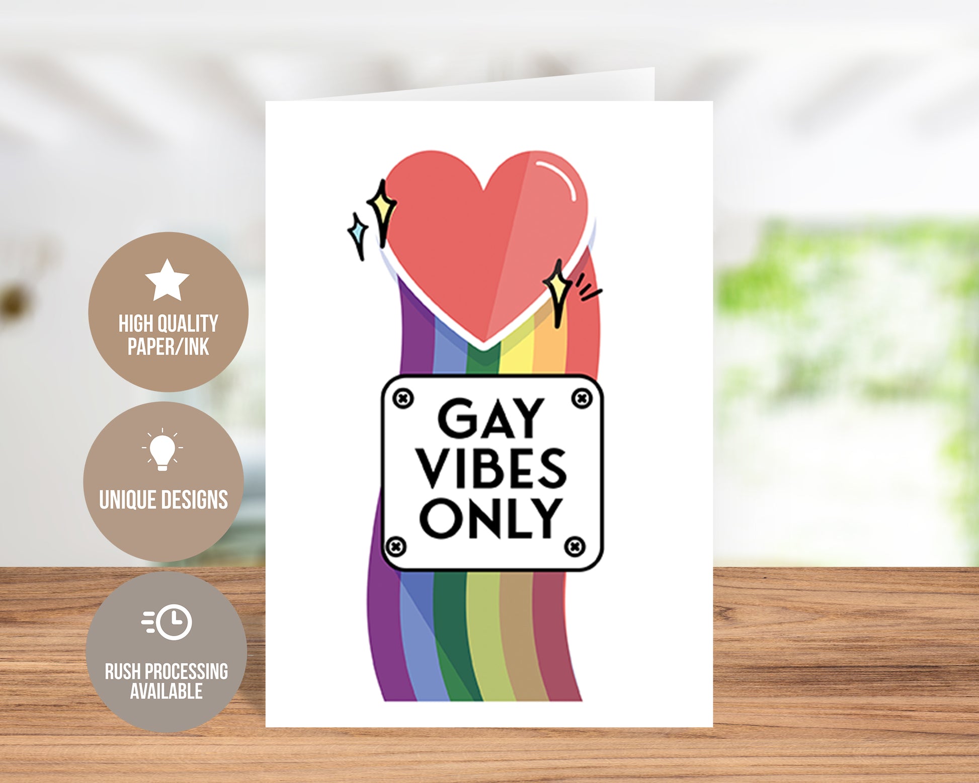 Share the joy and pride of the LGBTQ+ community with our Gay Pride Greeting Card – "Gay Vibes Only"! Perfect for Pride celebrations, birthdays, or simply sending a message of love and support, this vibrant card radiates positivity and inclusivity. Featuring a colorful rainbow design, playful typography, and a glossy finish, this high-quality LGBTQ greeting card is as durable as it is eye-catching. Inside, the card is blank, allowing ample space for your personalized message—whether celebrating a milestone, sharing words of encouragement, or just spreading joy. Show your support for equality and let your friends, family, and loved ones know they are accepted and celebrated. Order your rainbow pride card today and brighten someone’s day with a dose of rainbow happiness!