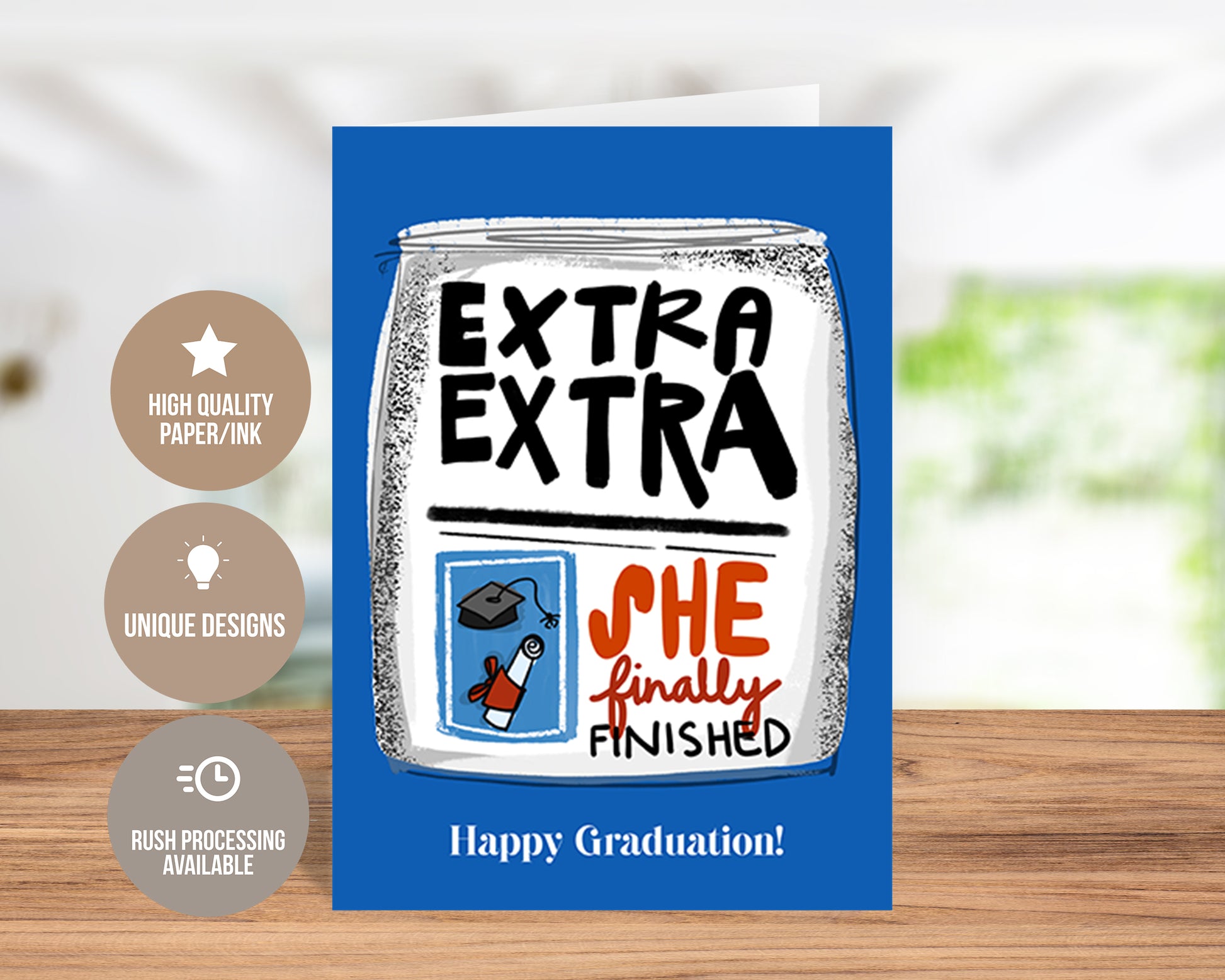 Celebrate milestones with our Extra, Extra She Did It card, a traditional congratulations card perfect for graduations, promotions, or personal victories. Crafted from high-quality cardstock with a timeless design, this achievement greeting card blends sophistication and heartfelt joy. Its bold message brings a spark of celebration, making it a meaningful keepsake.