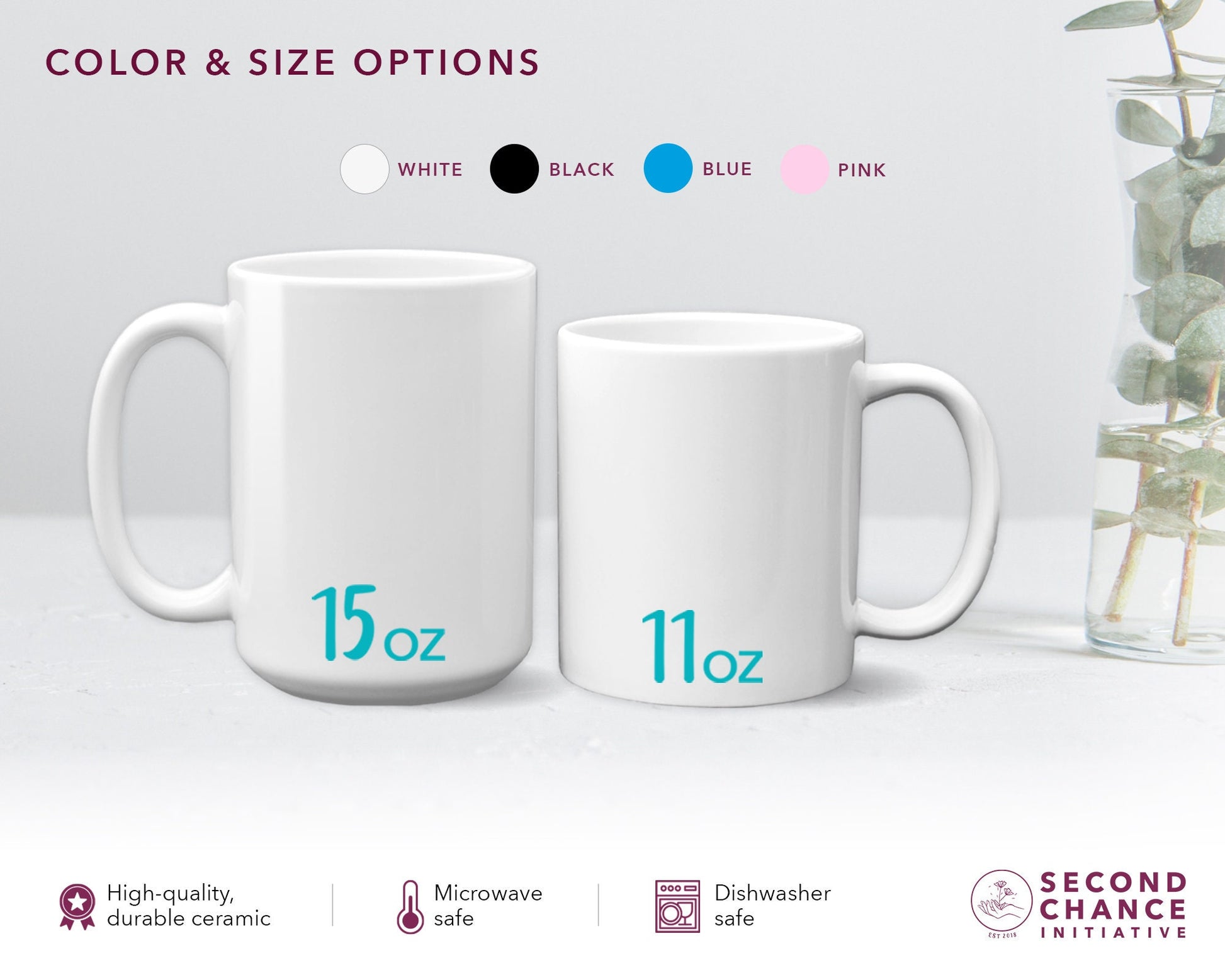 Sublimated on an 11 oz (3.7” H x 3.25”) or 15 oz (4.5" H x 3.4") Ceramic Coffee Mug for vivid and lasting designs.