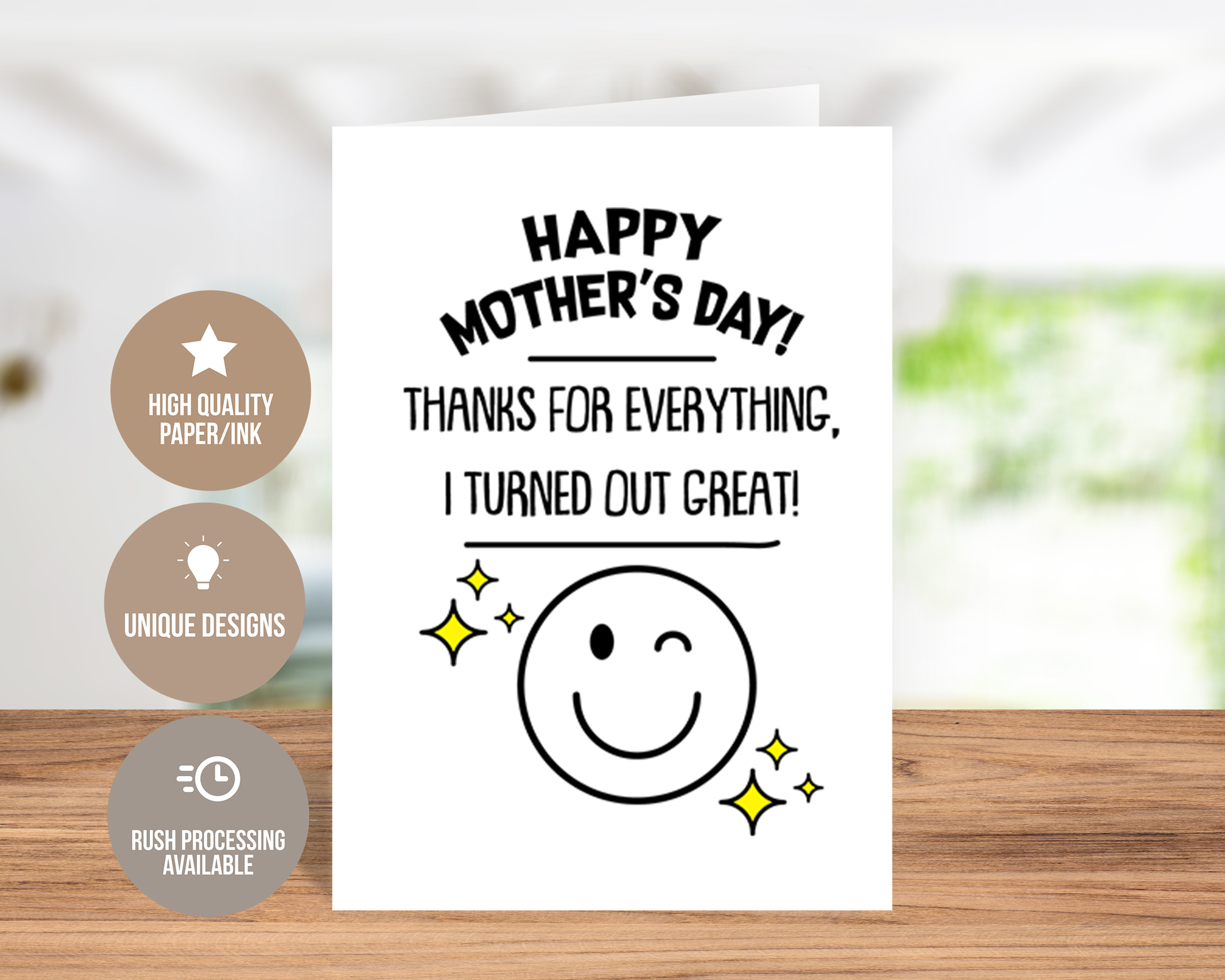 Thanks For Everything, I Turned Out Great! Mother's Day Card.