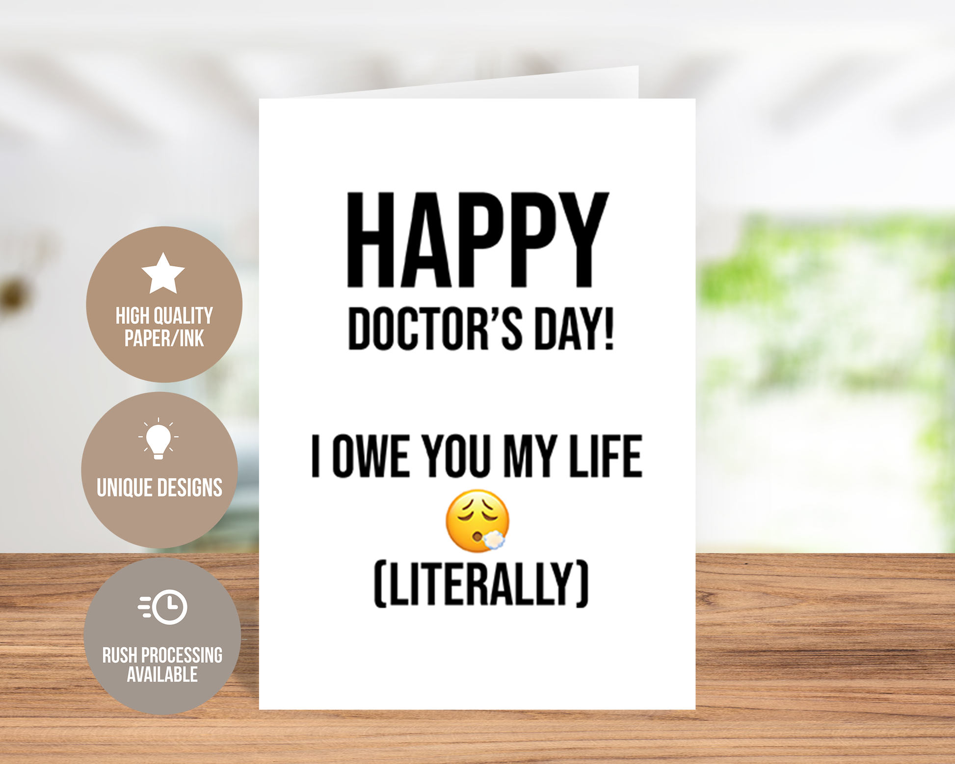 Happy Doctor's Day! I Owe You My Life (Literally) Doctor's Day Card.