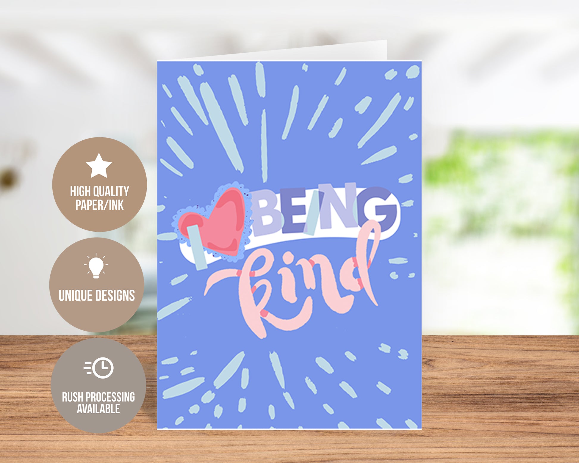 Make someone's day brighter with our "I Heart Being Kind" greeting card. Whether it's for a friend, family member, or colleague, this card is sure to bring a smile to their face and warmth to their heart. Order yours today and let kindness shine!