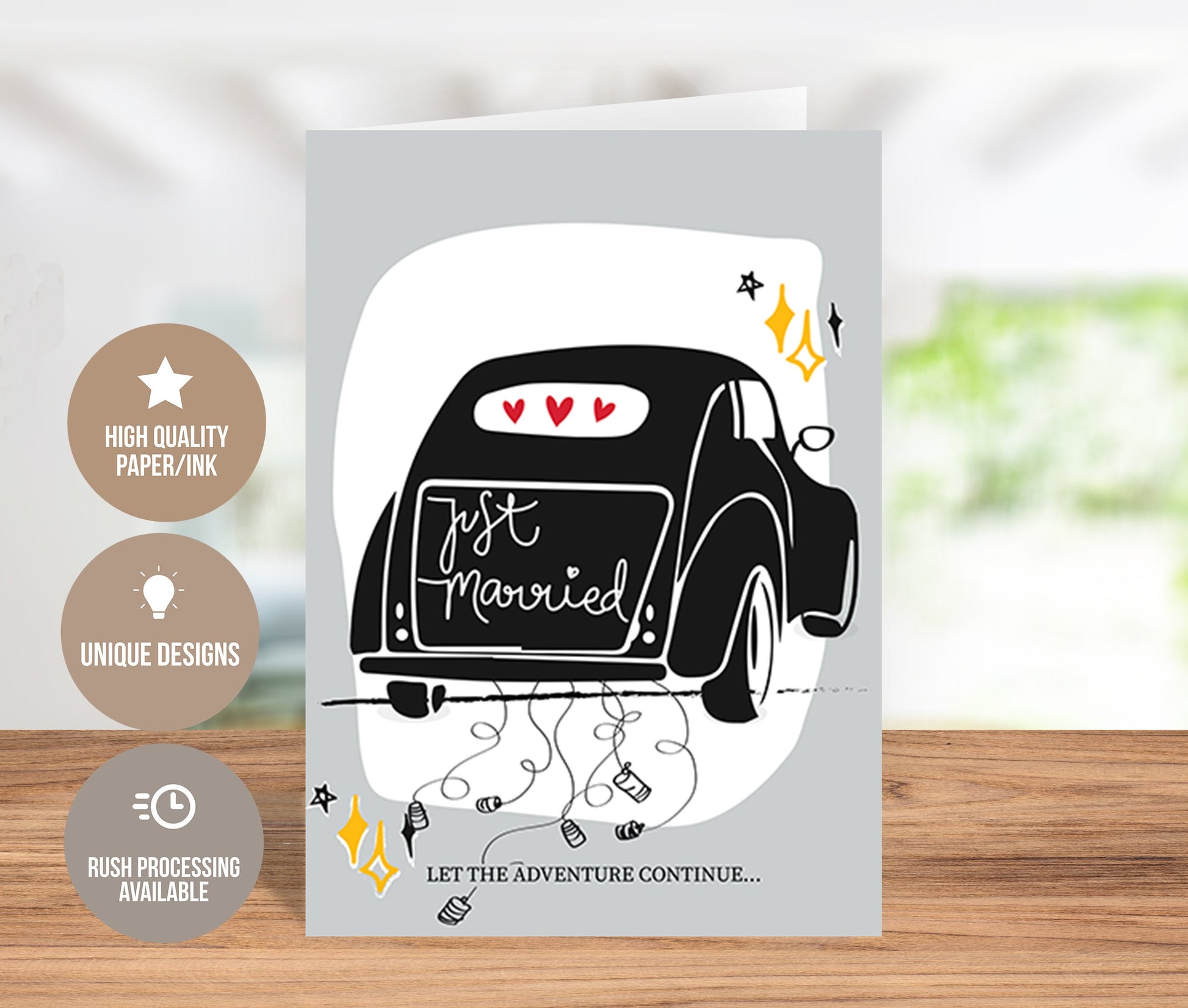 Wish the new couple a happily ever after with a Just Married Greeting Card. Our Let The Adventure Continue Card is a wonderful way to spread the good news and celebrate a life milestone. This wedding congratulations card is perfect for expressing joy and best wishes as they begin their next chapter together.