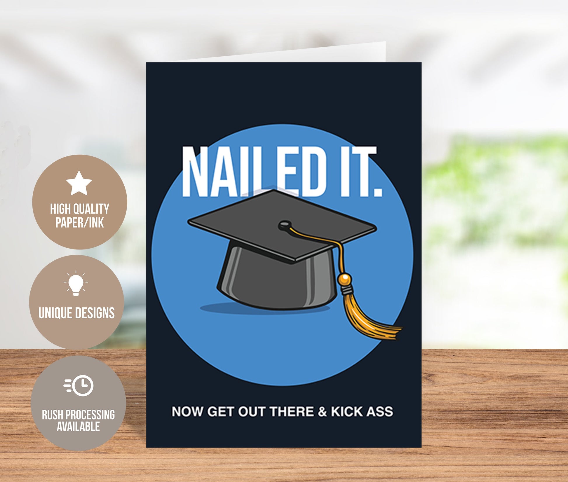 Congratulate someone on their well-deserved accomplishment with a Nailed It Greeting Card. This fun and thoughtful Kick Ass Greeting Card is the perfect way to celebrate an upcoming graduation. Whether it’s for a friend, family member, or colleague, this Graduation Congratulations Card is a great way to say Congrats Grad and encourage them for their next big step!