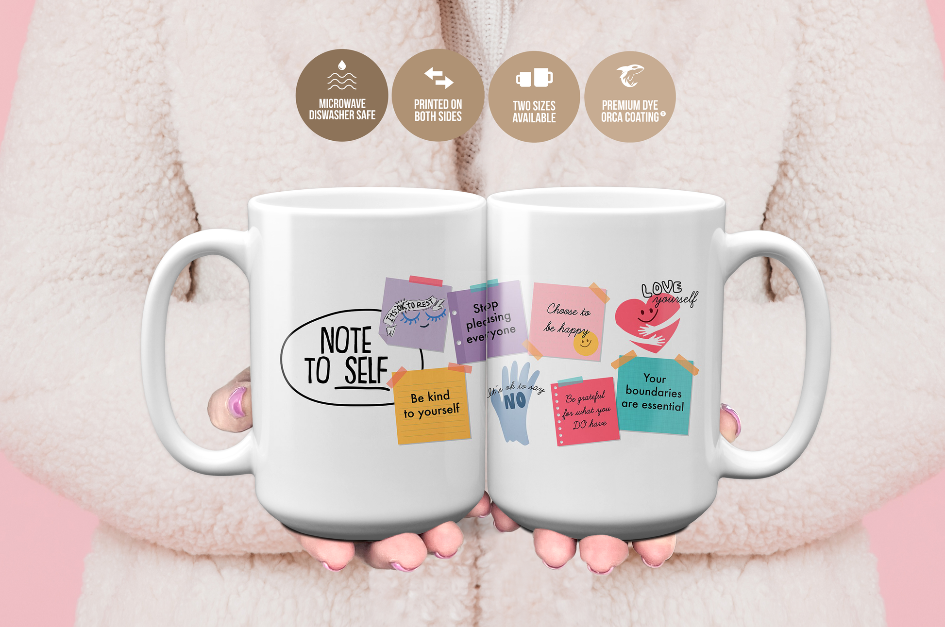 Start your day with positivity with our Positive Affirmation Mug from Her 2nd Chance! Featuring affirmations like "It's Okay To Rest" and "Be Kind To Yourself Mug," this Note to Self Mug serves as a gentle reminder to prioritize self-care and happiness. With affirmations like "Choose To Be Happy" and "Your Boundaries Are Essential," it's the perfect motivational coffee mug to cultivate a positive mindset. Crafted with care and designed to inspire, this mental health mug is a thoughtful gift for yourself or a loved one. Order now and spread positivity with this daily affirmation cup!
