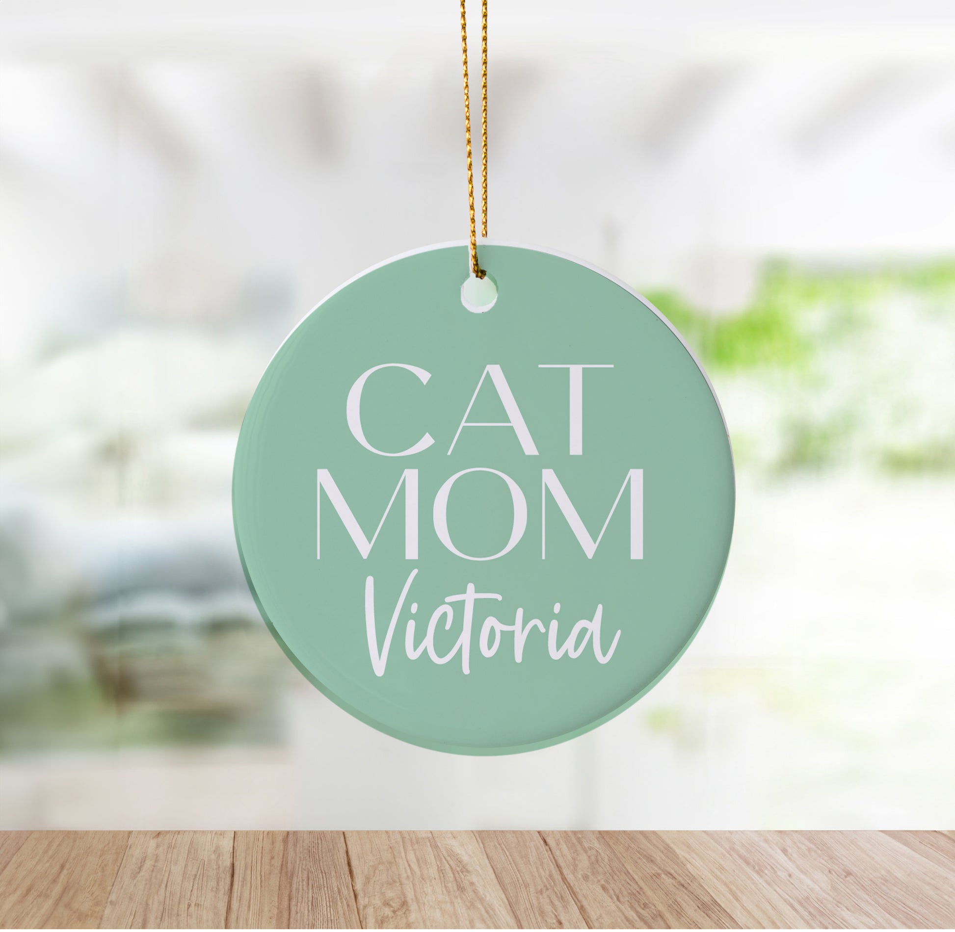 Celebrate the cat lover in your life with our handmade custom cat mom ornament. This charming double-sided holiday decoration features a simplistic design that will stay vibrant for years to come, making it a perfect keepsake for any pet enthusiast.