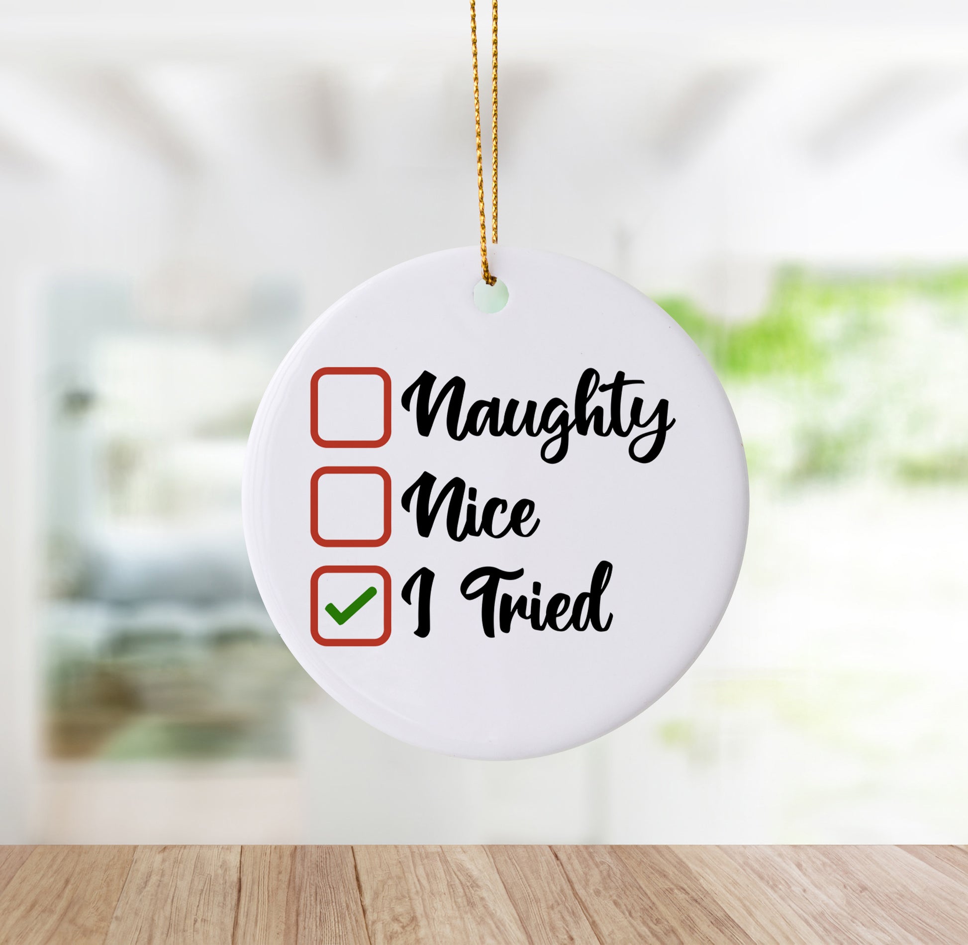 Funny "Naughty, Nice, I Tried" Handmade Christmas Ornament