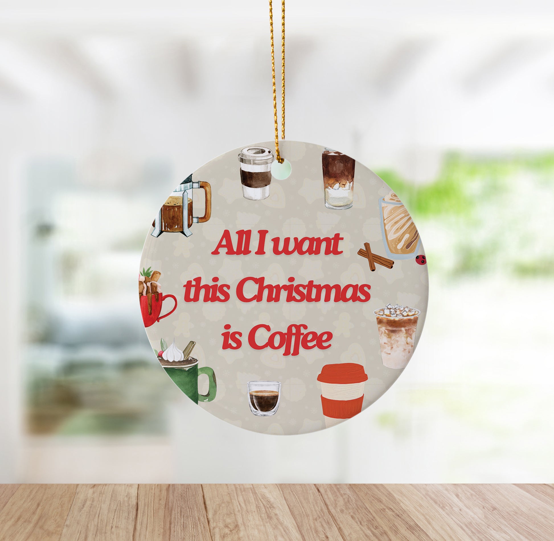 Handmade "All I Want for Christmas is Coffee" Funny Holiday Ornament