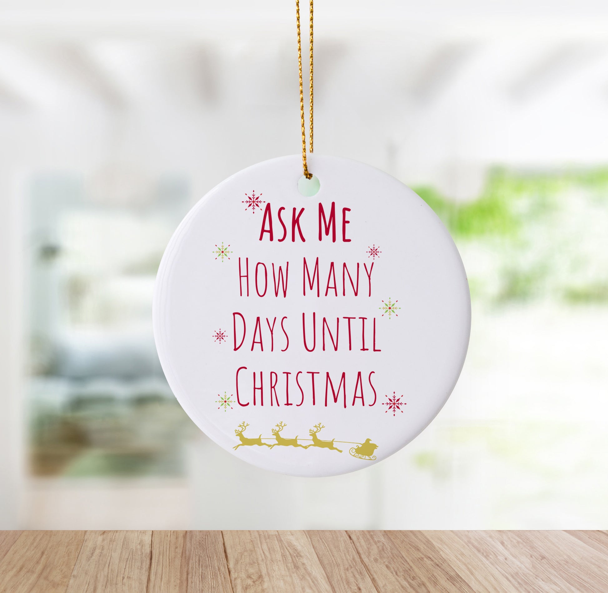 Make the countdown to Christmas fun and festive with our "Ask Me How Many Days 'Til Christmas" Ornament! This charming ornament is a perfect reminder that Santa is coming, adding excitement to your holiday season. Featuring a minimalistic design, it blends seamlessly with any holiday decor.