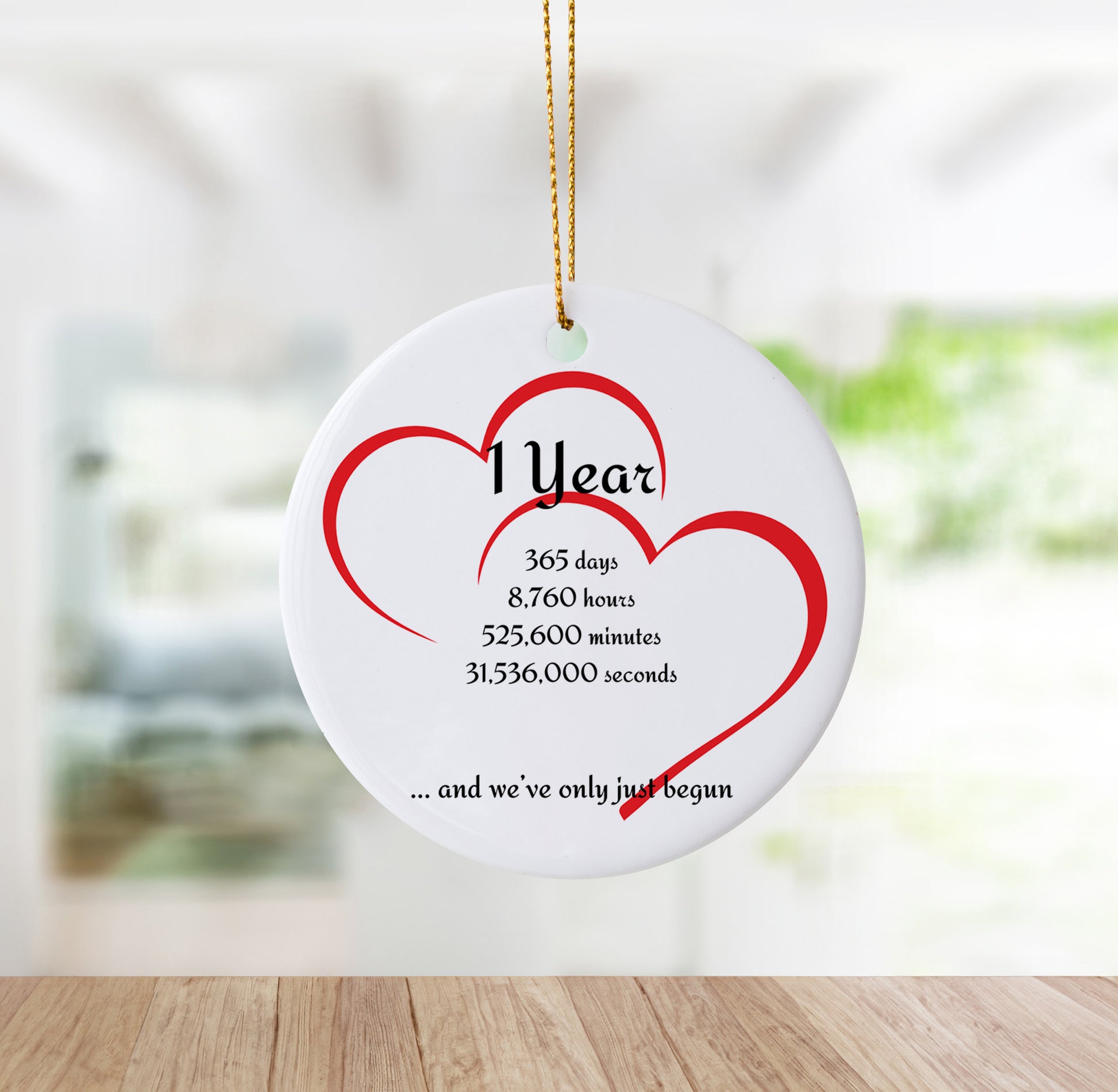 Celebrate a love that’s just getting started with this beautiful "1 year, 365 days, 8760 hours, 525,600 minutes, 31,536,000 seconds... and we've only just begun" anniversary ornament. Perfect for marking your first year together, this keepsake adds a romantic touch to your Christmas decor or holiday celebration. Thoughtfully designed to capture the milestones of your relationship, this ornament makes a meaningful gift for couples to cherish. Whether as a holiday ornament or a special anniversary gift, it’s a unique way to honor your love story and look forward to the many moments ahead!