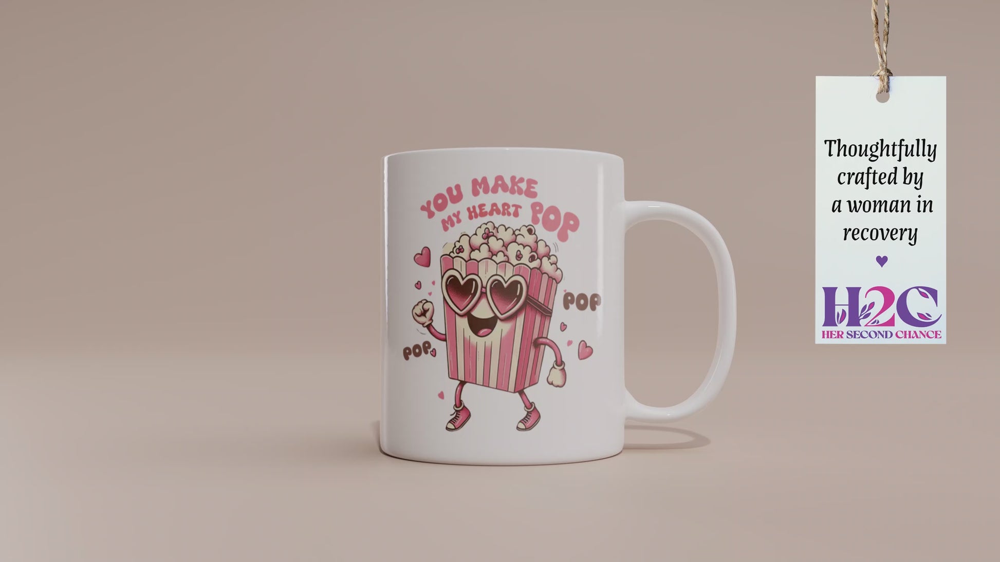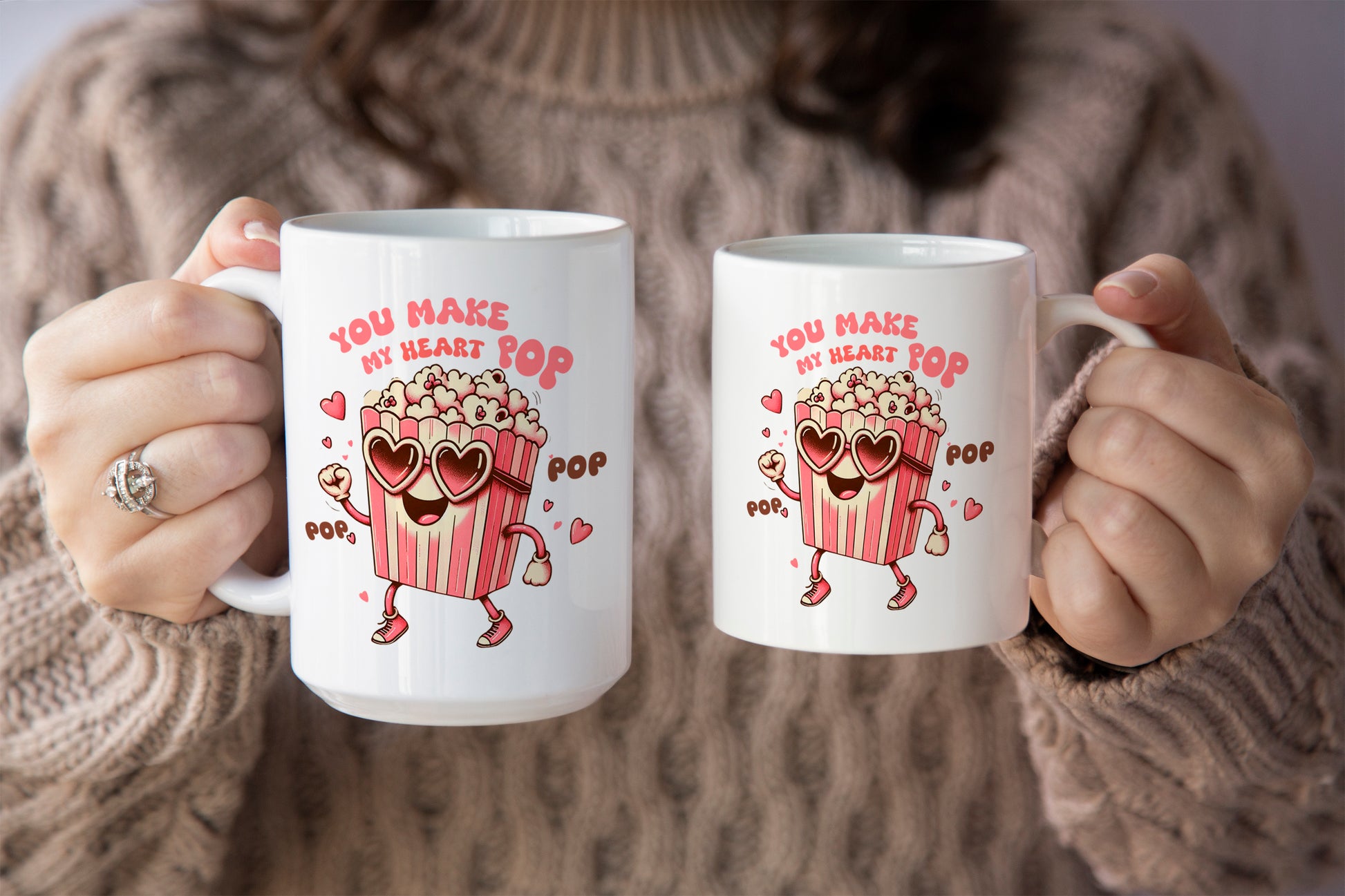 Cute Valentines "You Make My Heart Pop" Mug with Popcorn