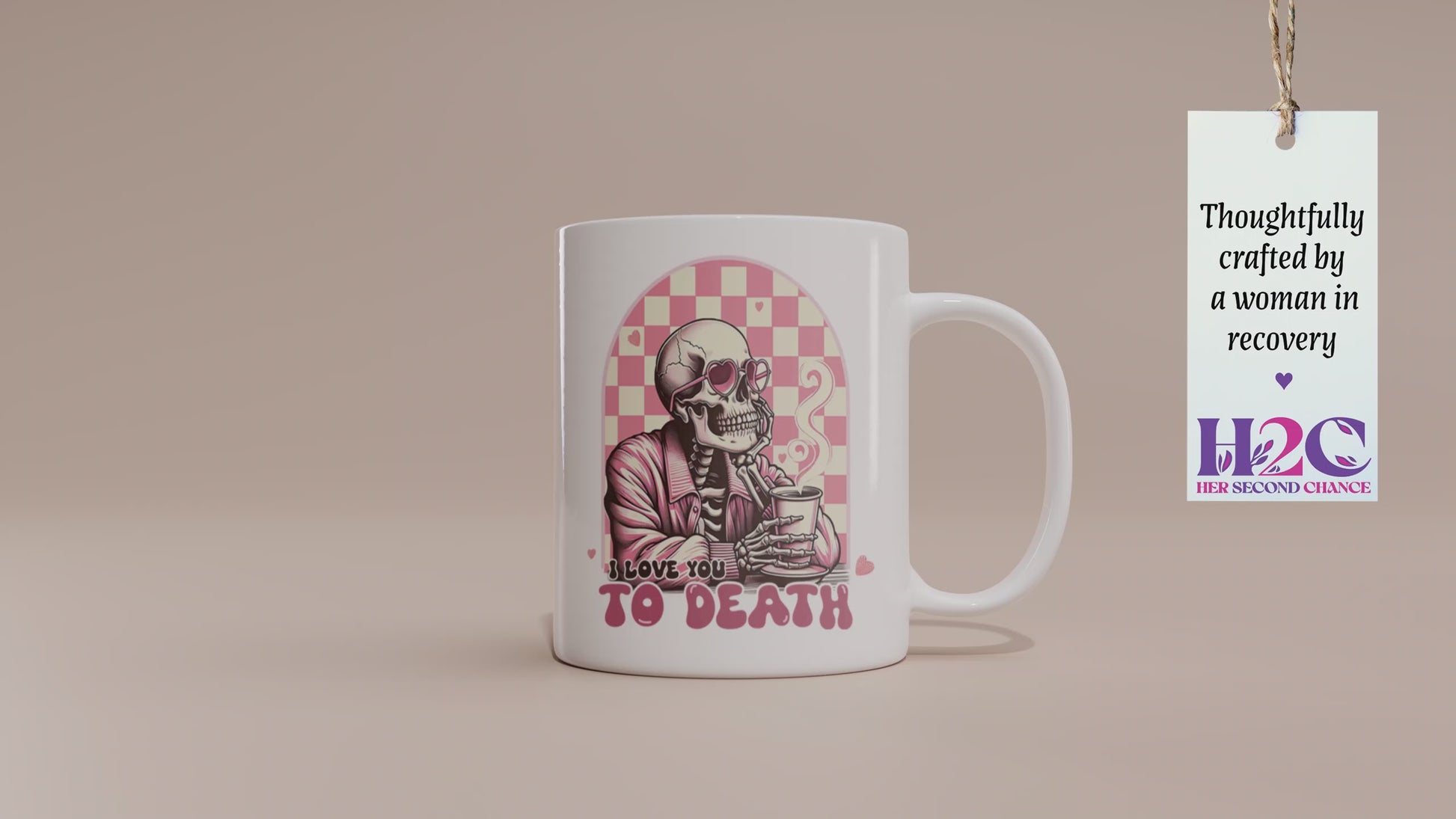 Show your everlasting love with this "I Love You to Death" mug featuring a stylish skeleton design. Perfect for Valentine’s Day, this love you mug is an edgy and heartfelt gift for valentine occasions. Whether it’s a gift for her, gift for him, or a gift for a friend, this unique valentine is ideal for coffee lovers who appreciate a touch of humor and romance. Handmade with care, this coffee mug is a striking couples gift or a meaningful handmade gift to say "Be Mine" in a way they’ll never forget. Celebrate love with a mug that’s as timeless as your bond!
