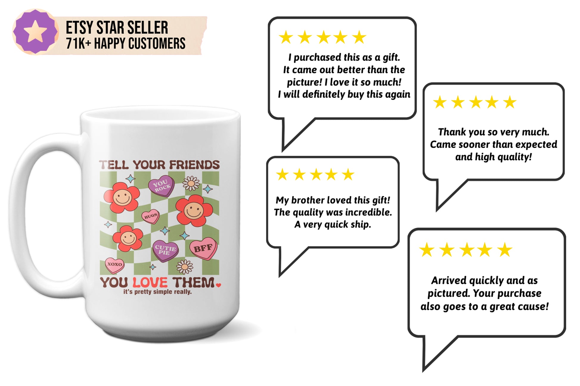 Remind everyone to share the love with this thoughtful "Tell Your Friends You Love Them. It’s Pretty Simple Really." mug. Perfect for Valentine’s Day, this love you mug is a heartfelt gift for valentine occasions. Whether it’s a gift for her, gift for him, or a gift for a friend, this unique valentine is ideal for anyone who values meaningful connections. Designed for coffee lovers, this coffee mug is a sweet and simple way to show you care. Handmade with love, it’s perfect as a couples gift, a thoughtful keepsake, or a reminder to spread kindness every day. Share the message of love with this meaningful handmade gift!