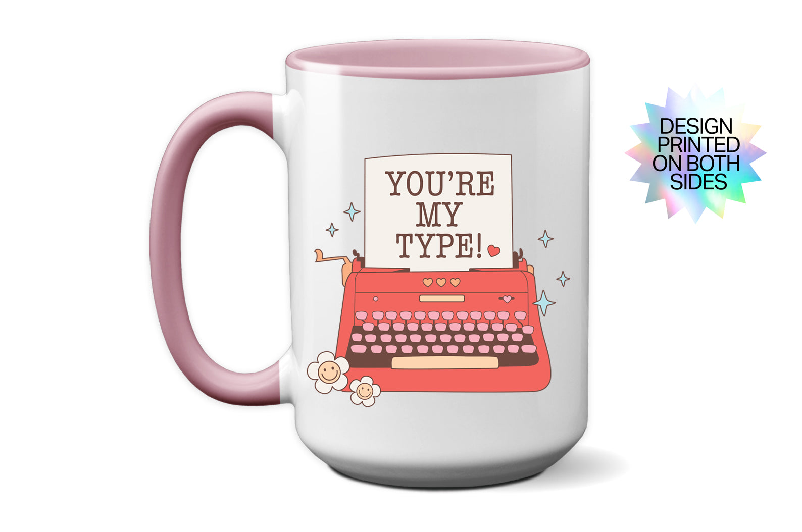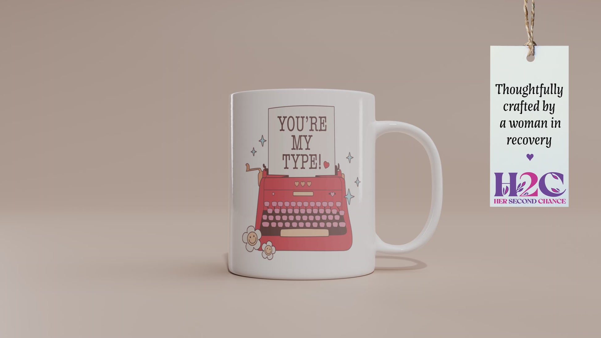 Celebrate love with this charming "You’re My Type" mug featuring a vintage typewriter design. Perfect for Valentine’s Day, this love-you mug is a heartfelt gift for Valentine's occasions. Whether it’s a gift for her, a gift for him, or a gift for a friend, this coffee mug makes a thoughtful and creative unique Valentine. Ideal for coffee lovers, it’s a sweet and meaningful couple gift or a lovely handmade gift for someone who holds a special place in your heart. Share your affection with this timeless and stylish design!