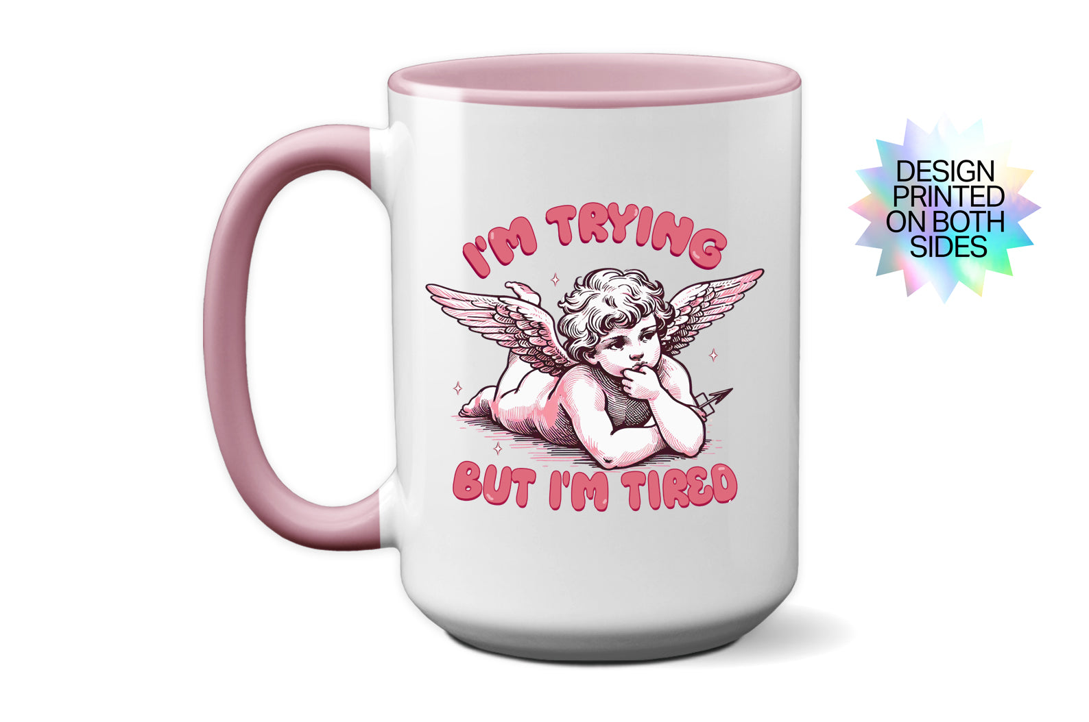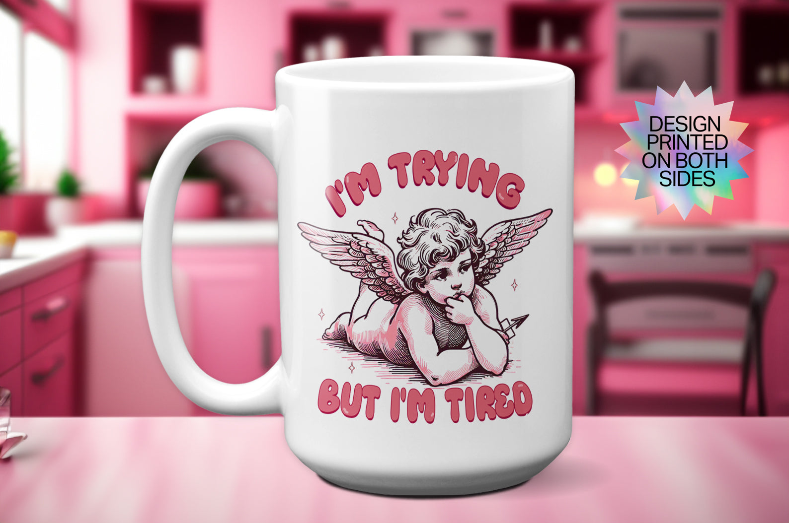 Funny "I’m Trying but I’m Tired" Valentines Mug.