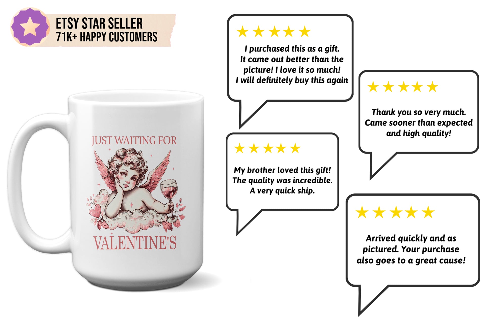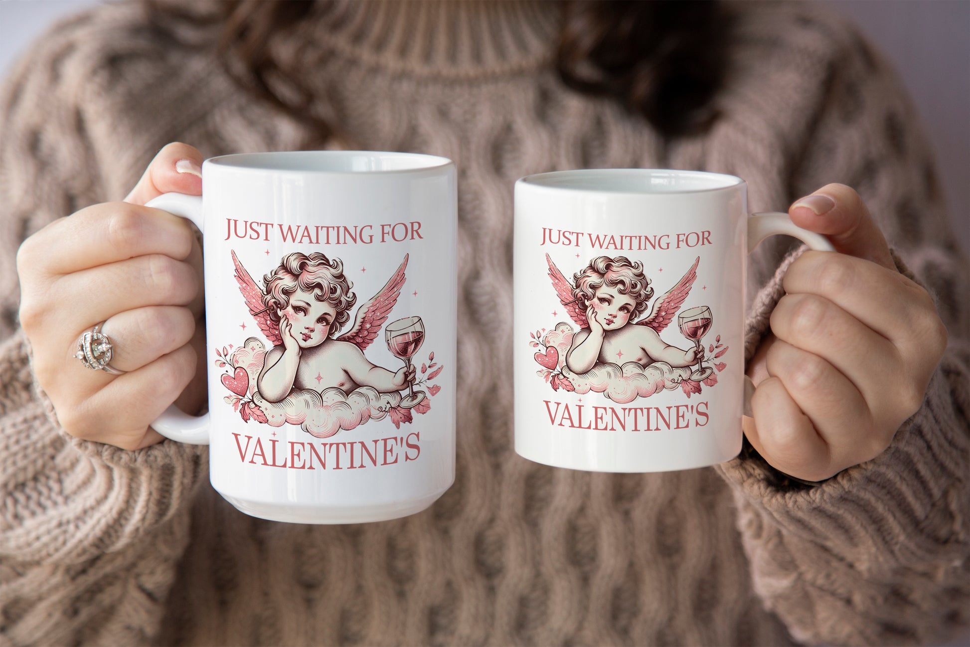 Add a touch of fun to your Valentine’s Day with this charming "Just Waiting for Valentine’s" mug featuring Cupid holding a wine glass. Perfect for coffee or wine lovers, this love-you mug is a playful and thoughtful gift for Valentine's occasions. Whether it’s a gift for her, a gift for him, or a gift for a friend, this unique Valentine is ideal for anyone who loves a little humor with their holiday cheer. Handmade with care, it’s a versatile couples gift or a delightful addition to any coffee mug collection. Celebrate love, laughter, and good times with this whimsical and memorable handmade gift!