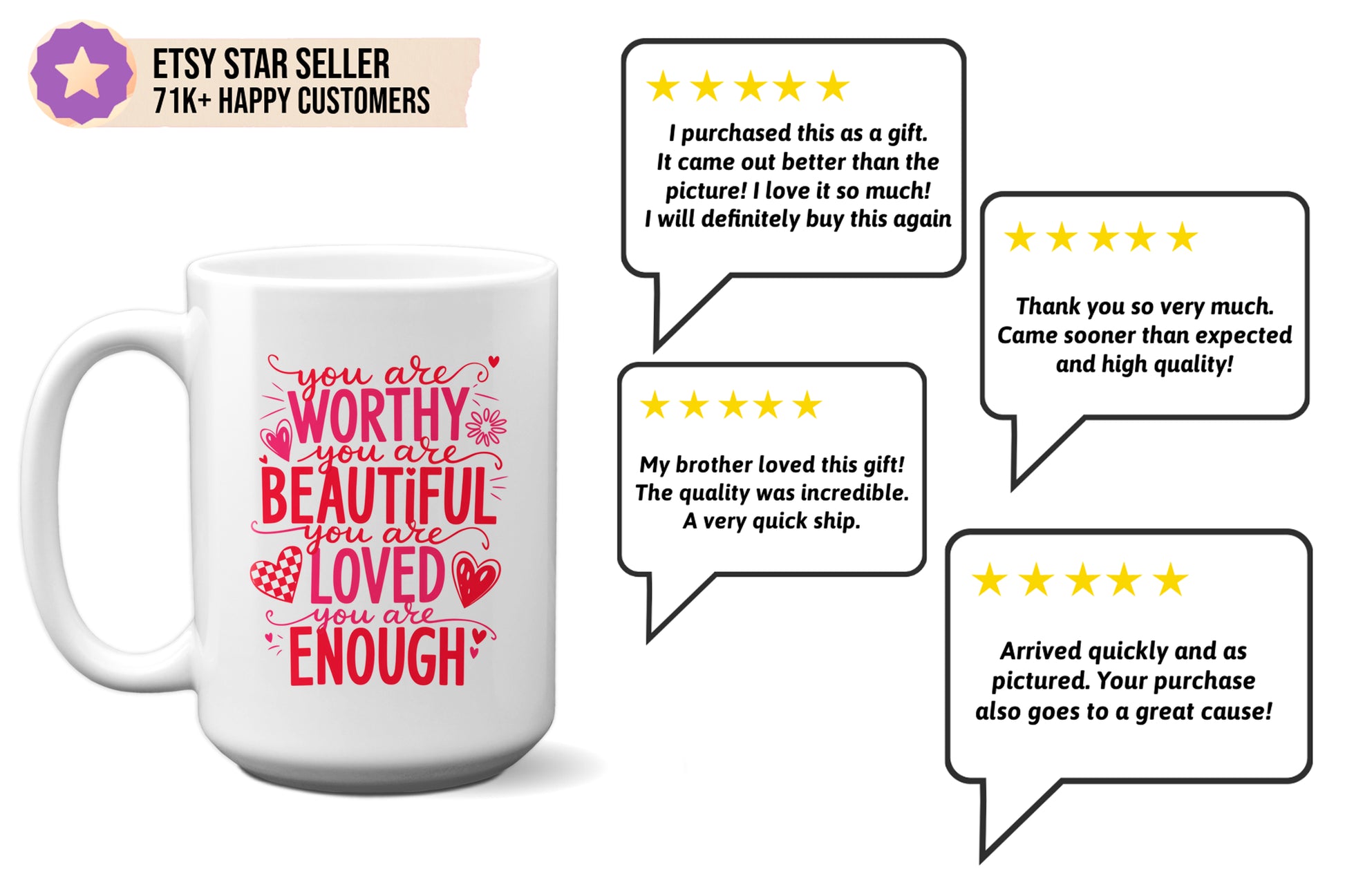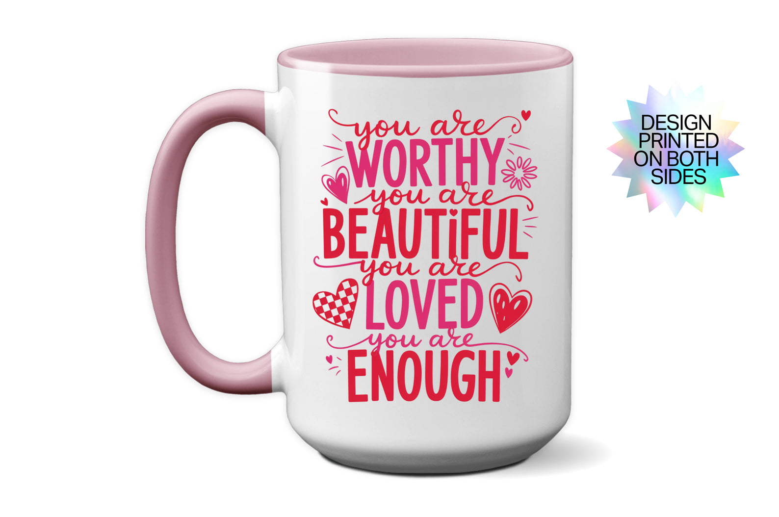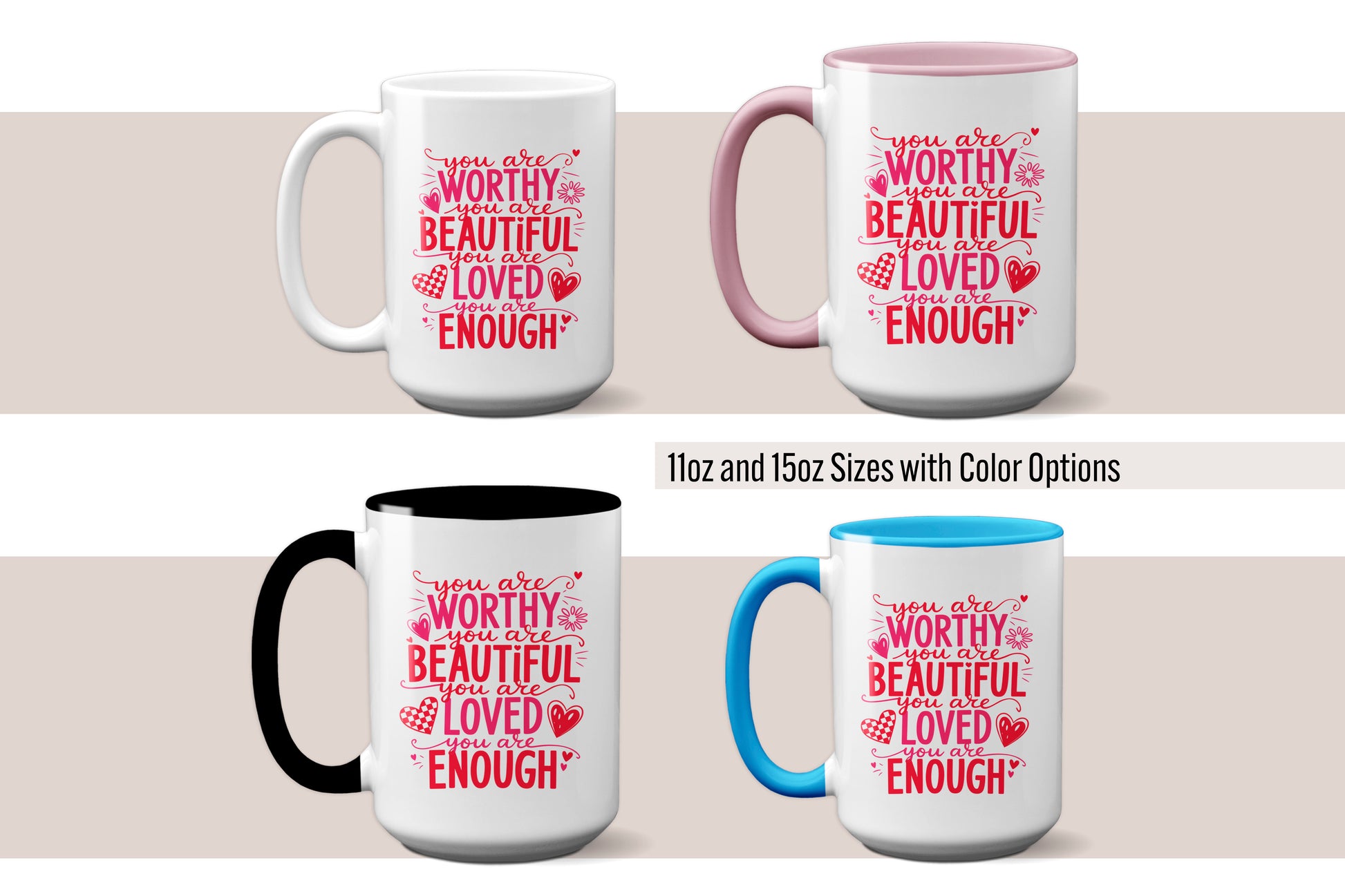 Fun "You Are Worthy, You Are Beautiful, You Are Loved, You Are Enough" - Valentine’s Day Mug.