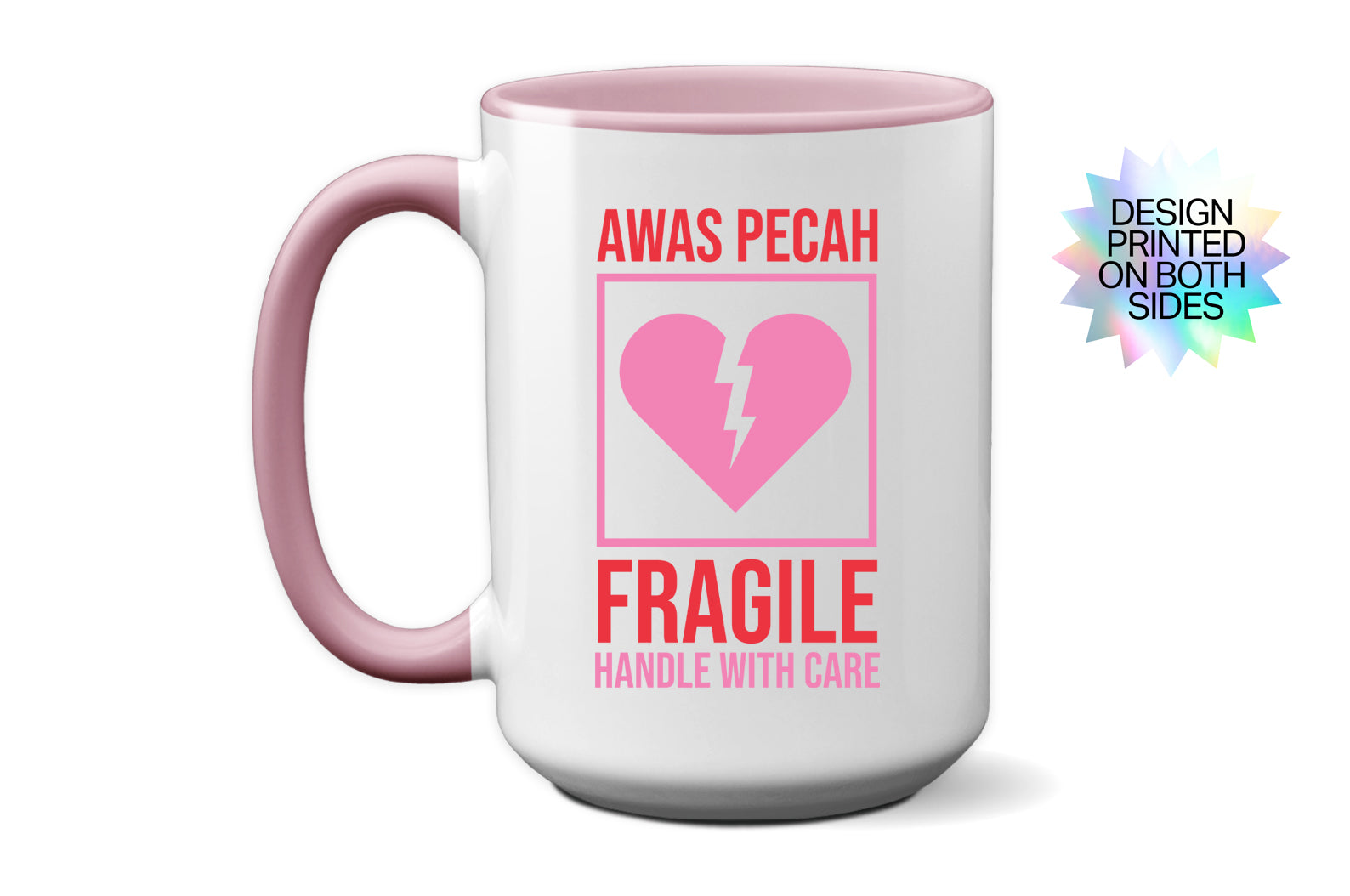 Fun "Awas Pecah Fragile - Handle with Care" Valentine’s Day Mug.
