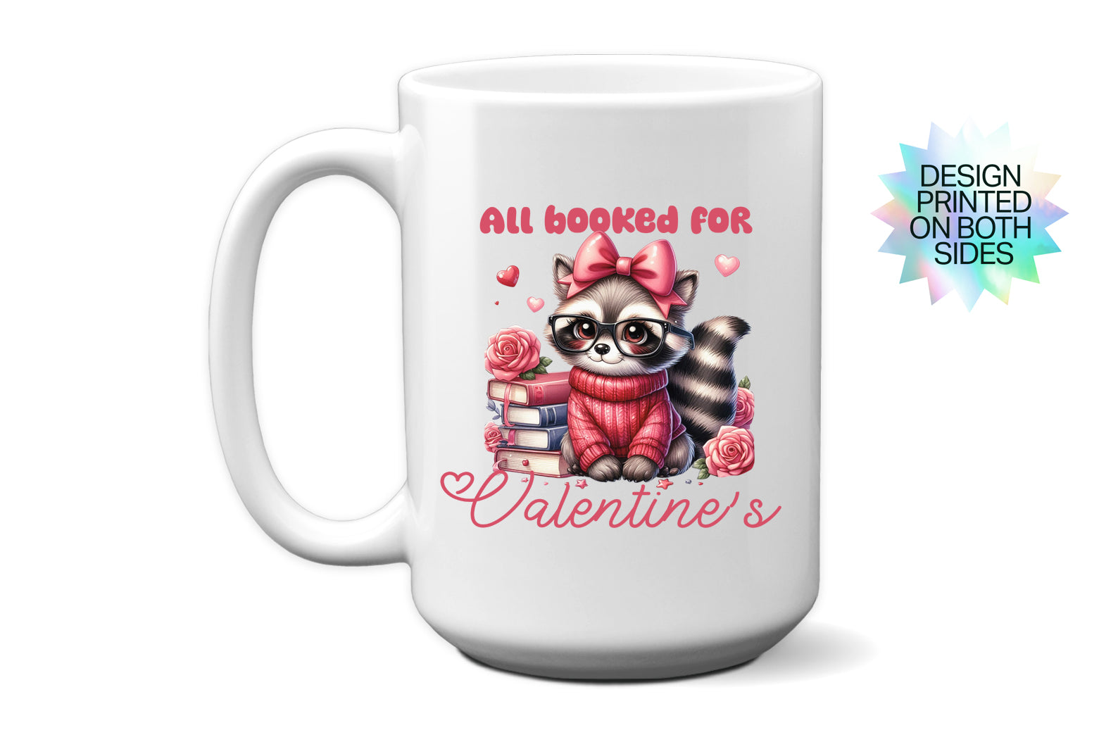 Fun "All Booked for Valentine’s" Raccoon & Books Mug.