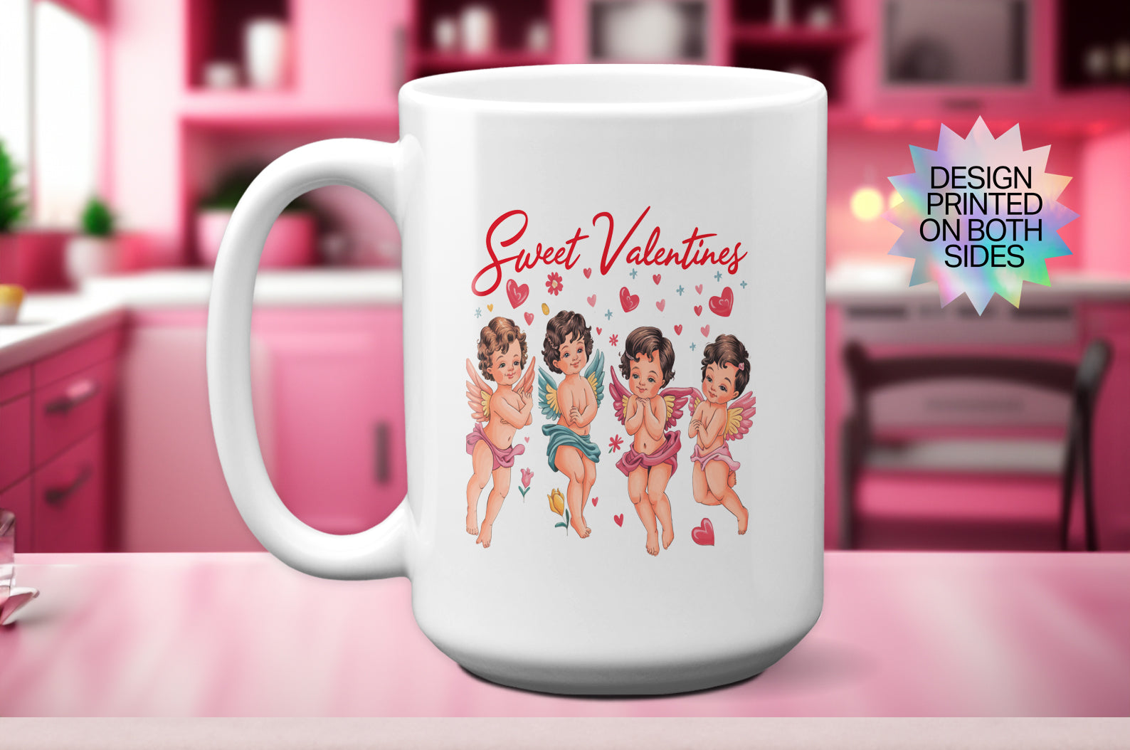Celebrate love with charm and sweetness using our "Sweet Valentine" mug, featuring four adorable cupids! This handmade keepsake is a perfect "Be Mine" gift for her, him, or a thoughtful surprise for a friend. Ideal for coffee lovers, this unique Valentine’s mug is a delightful way to start your day or share a romantic coffee moment. Whether as a couples' gift, a treat for yourself, or paired with coffee and donuts, this mug is a heartfelt keepsake to cherish. Spread the love this Valentine’s Day with this cupid-inspired design!