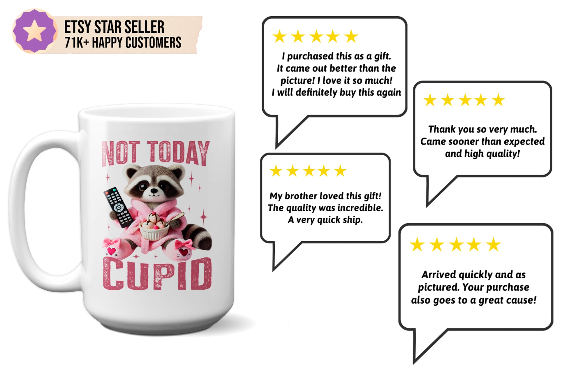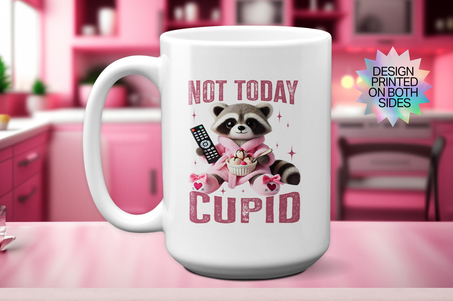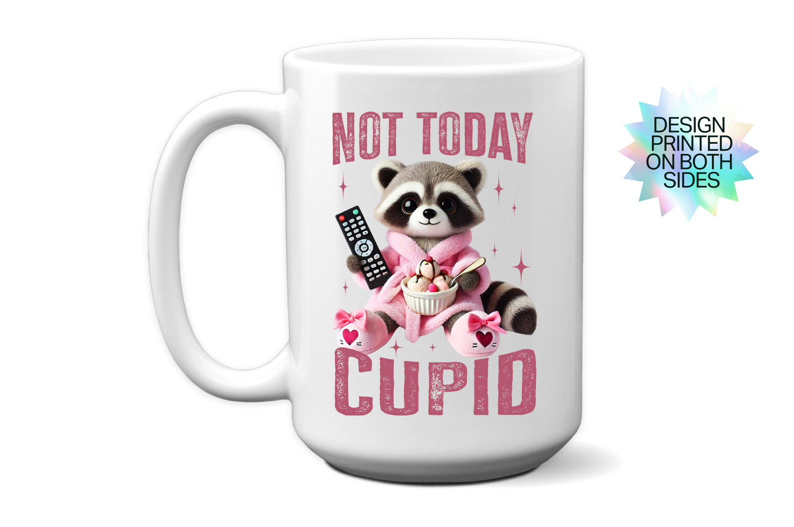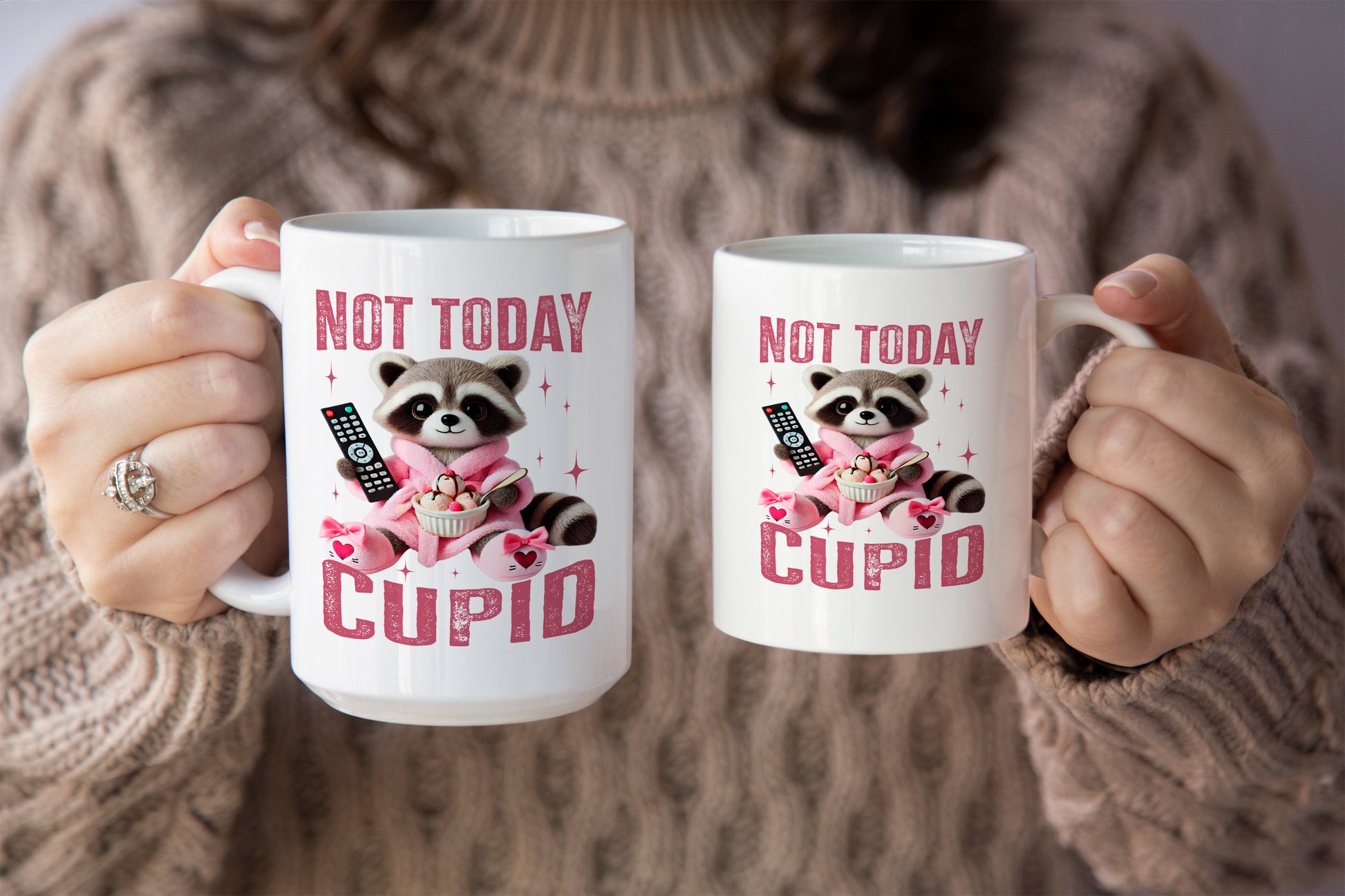 Fun "Not Today, Cupid" Raccoon Valentine’s Day Mug.