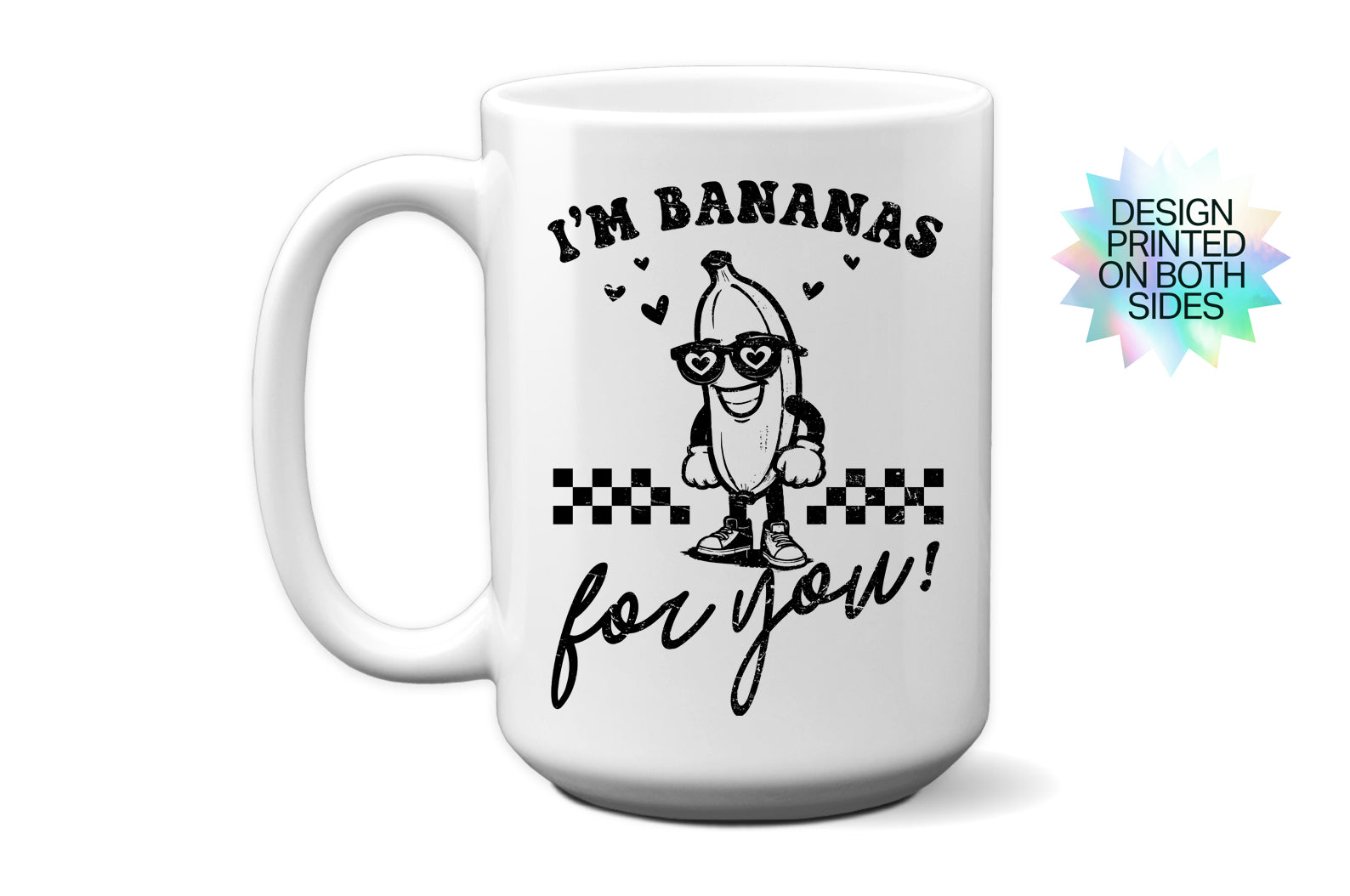 Sublimated on an 11 oz (3.7” H x 3.25”) or 15 oz (4.5" H x 3.4") Ceramic Coffee Mug for vivid and lasting designs.