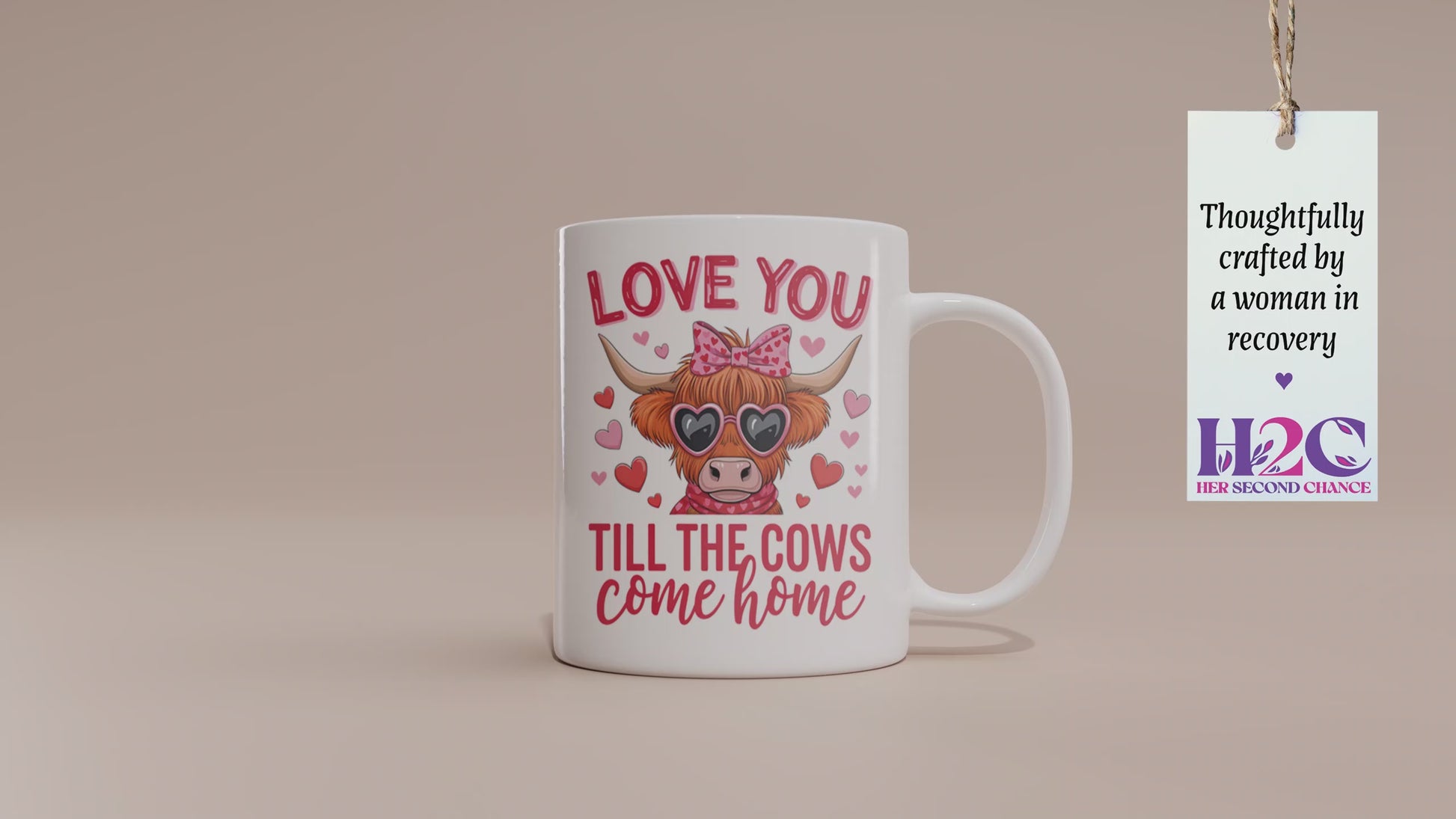 Share your love with a touch of whimsy with our "Love You Till the Cows Come Home" Valentine’s Day mug, featuring an adorable cow wearing heart-shaped sunglasses! This handmade keepsake is the perfect "Be Mine" gift for her, him, or a delightful surprise for a friend. Ideal for coffee lovers and couples, this unique Valentine’s mug adds charm and fun to your morning routine. Whether enjoyed with coffee and donuts or gifted as a memorable keepsake, this mug is a heartfelt way to celebrate love this Valentine’s Day!
