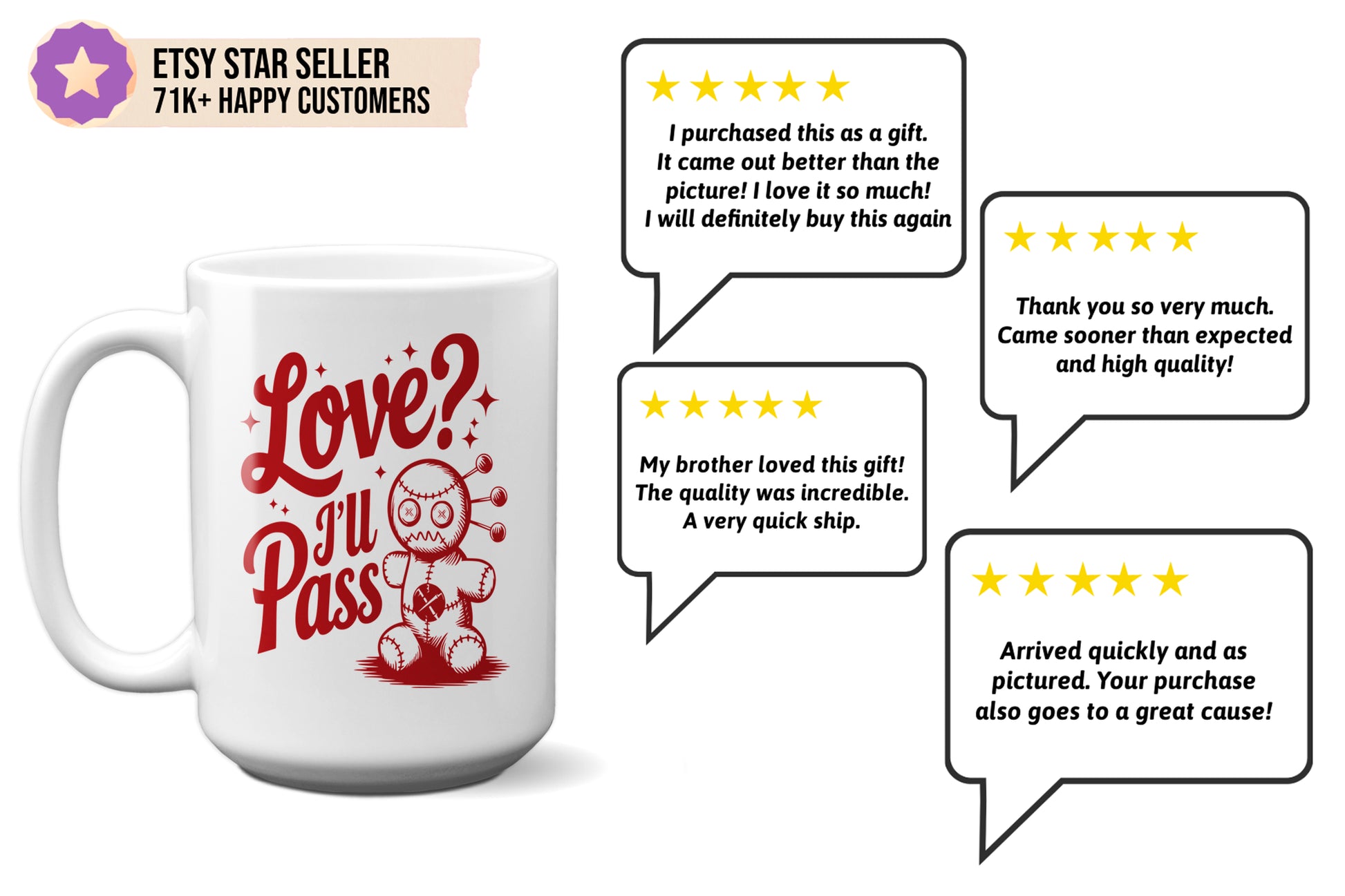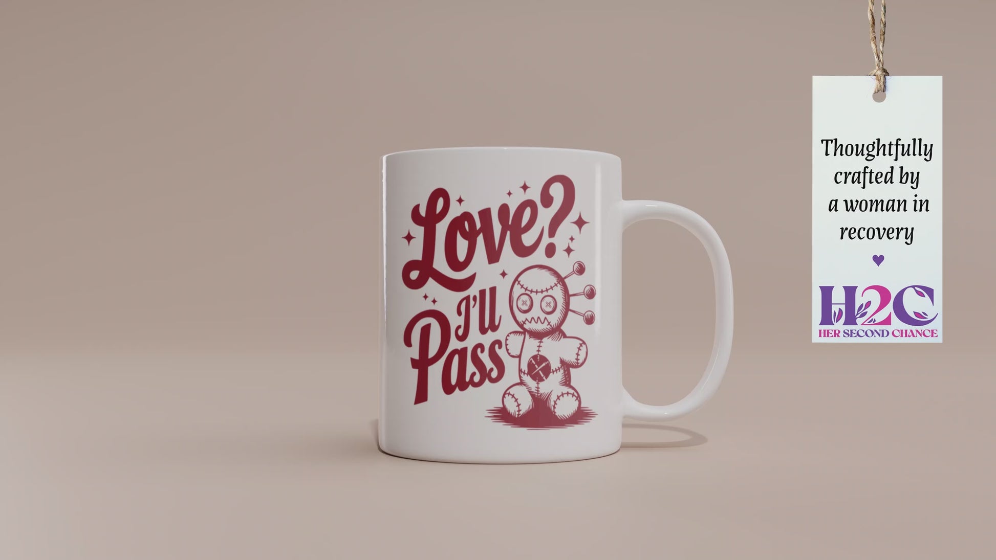 Celebrate Valentine’s Day with a dose of humor using our "Love? I’ll Pass" mug featuring a quirky voodoo doll design! This handmade keepsake is perfect for those who enjoy a unique and playful take on the holiday. Ideal as a "Be Mine" gift for her, him, or a thoughtful surprise for a friend, this mug is a standout choice for coffee lovers with a sense of humor. Whether shared with coffee and donuts or gifted as a fun keepsake, this mug adds a cheeky twist to your Valentine’s Day celebration while embracing your individuality.