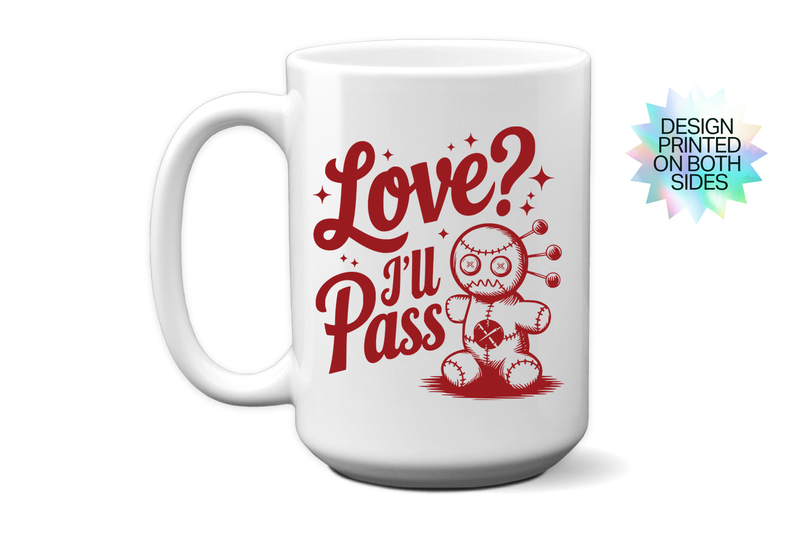 Cute "Love? I'll Pass" Voodoo Doll Valentine’s Day Mug