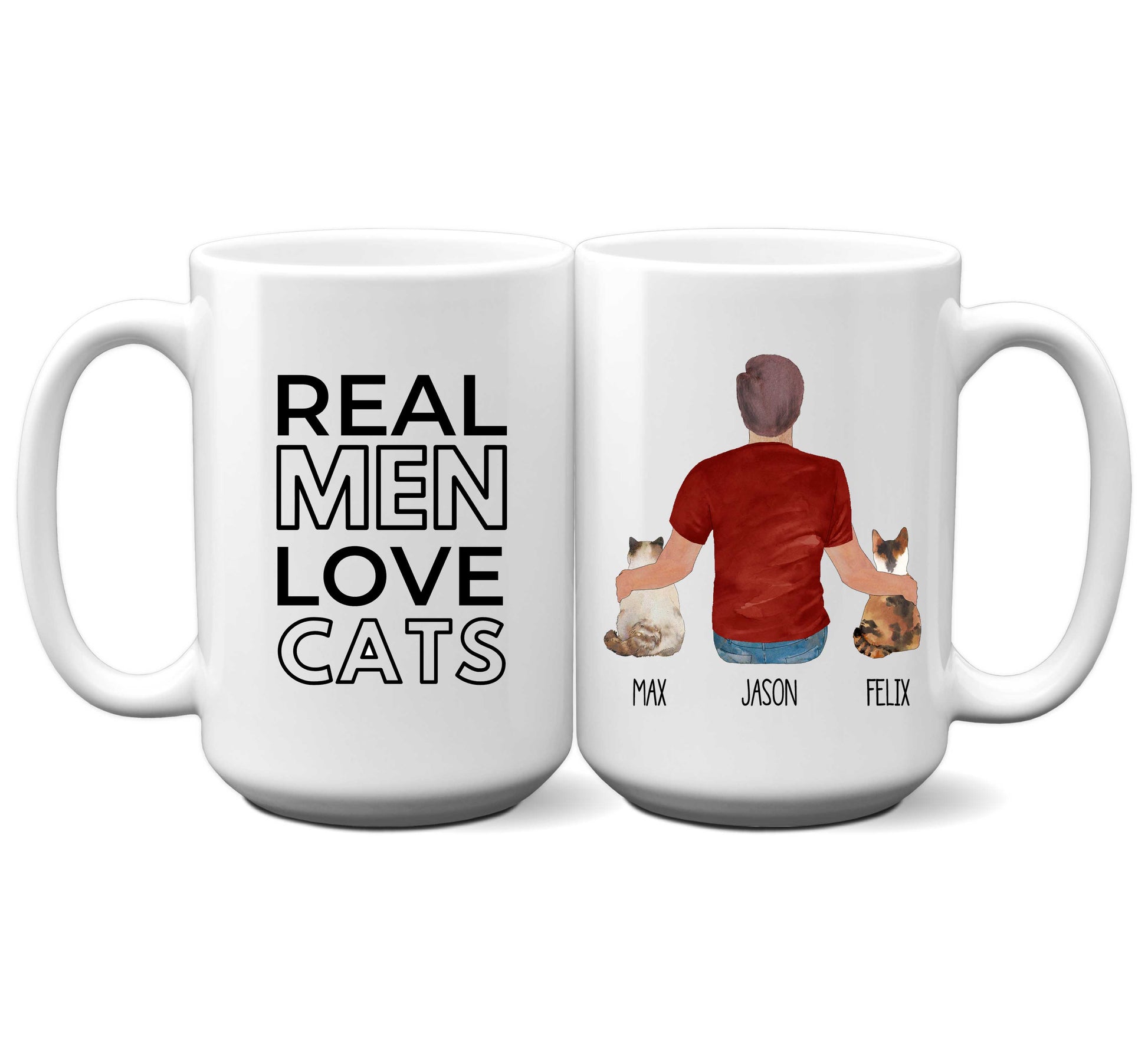 Treat your cat-loving boyfriend or husband to our "Real Men Love Cats" Custom Cat Mug – the purrfect Cat Dad Gift! This funny and charming present is ideal for any cat lover, especially for Valentine's Day. Surprise him with this unique and heartwarming gift that celebrates his love for felines.