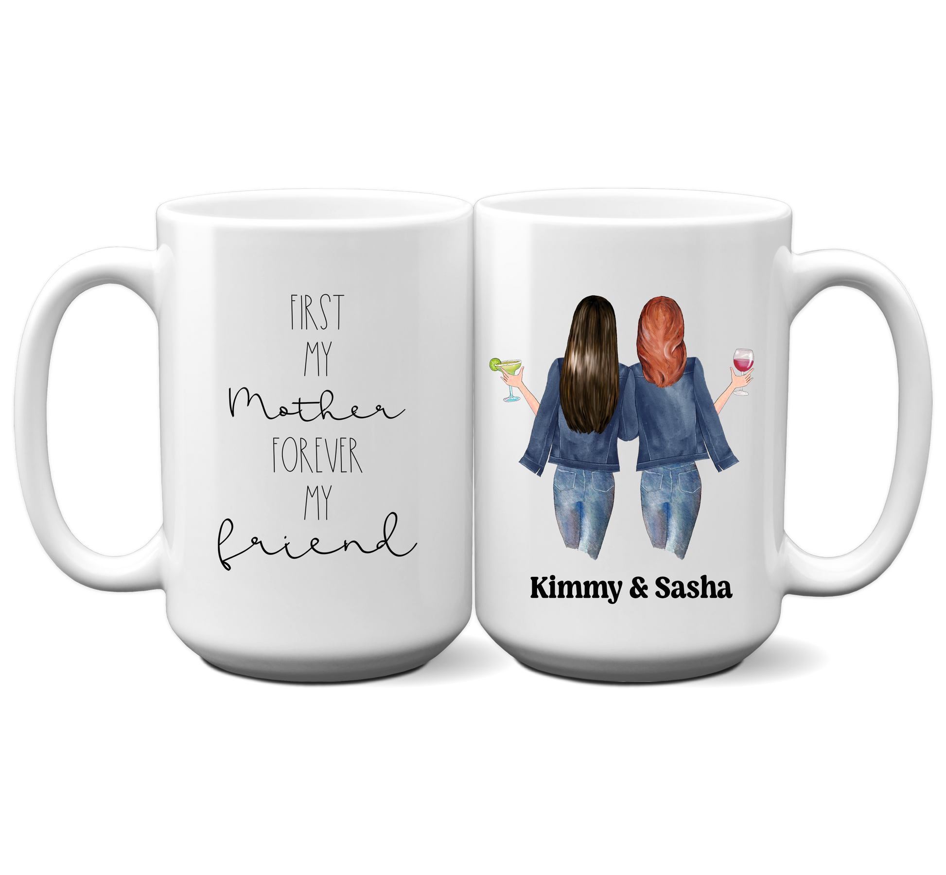 Make any holiday unforgettable with our custom gifts for mom! Show your appreciation with a personalized mom mug featuring the heartfelt message, 'First my mother, forever my friend.' This thoughtful gift from daughter to mom is sure to warm her heart and remind her of the special bond you share.