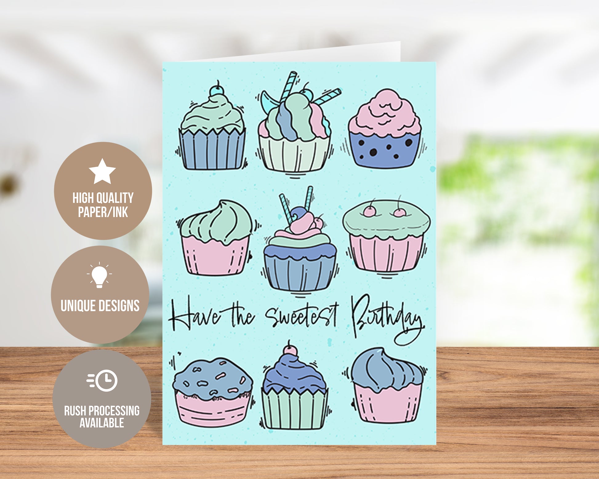 Have The Sweetest Birthday - Adorable Cupcake Greeting Card.