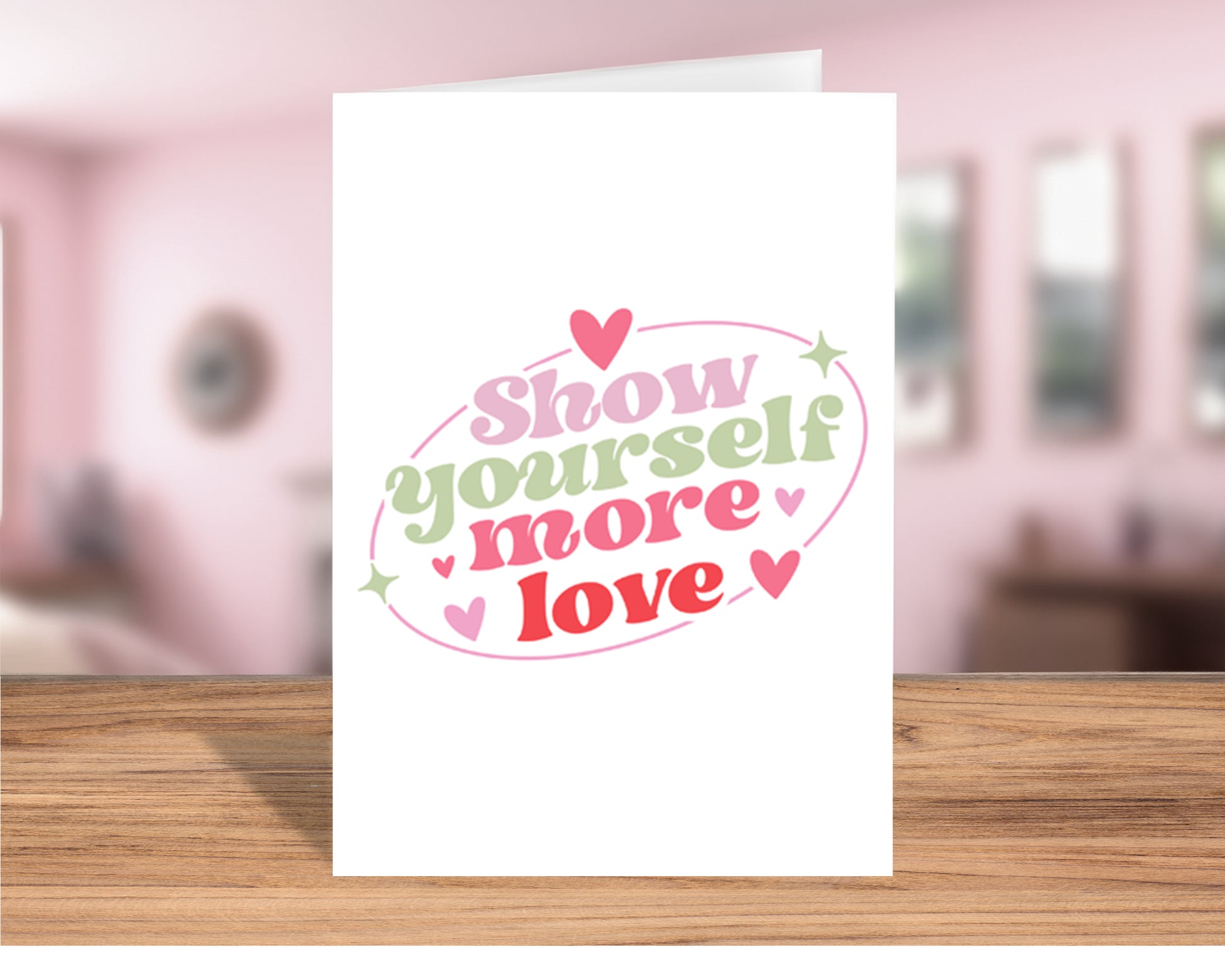 Unique "Show Yourself More Love" Self-Care Greeting Card