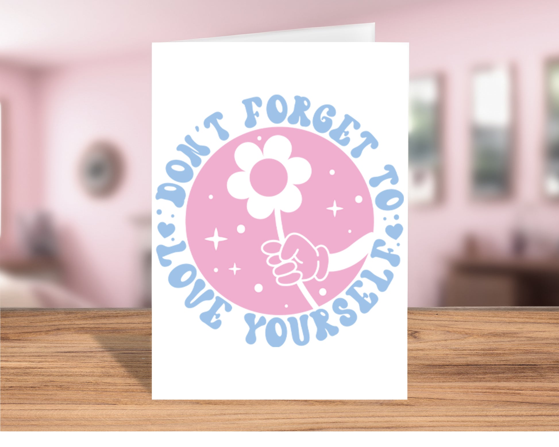 Inspirational "Don't Forget to Love Yourself" Greeting Card.